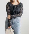 レースの透け感が上品で、春夏の冷房対策や日差しよけにもぴったりな1枚です。秋冬は中にロンTやハイネックのインナーを合わせても◎