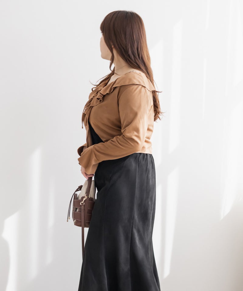 フリルリボンスエードカーディガン フリルリボンスエードカーディガン