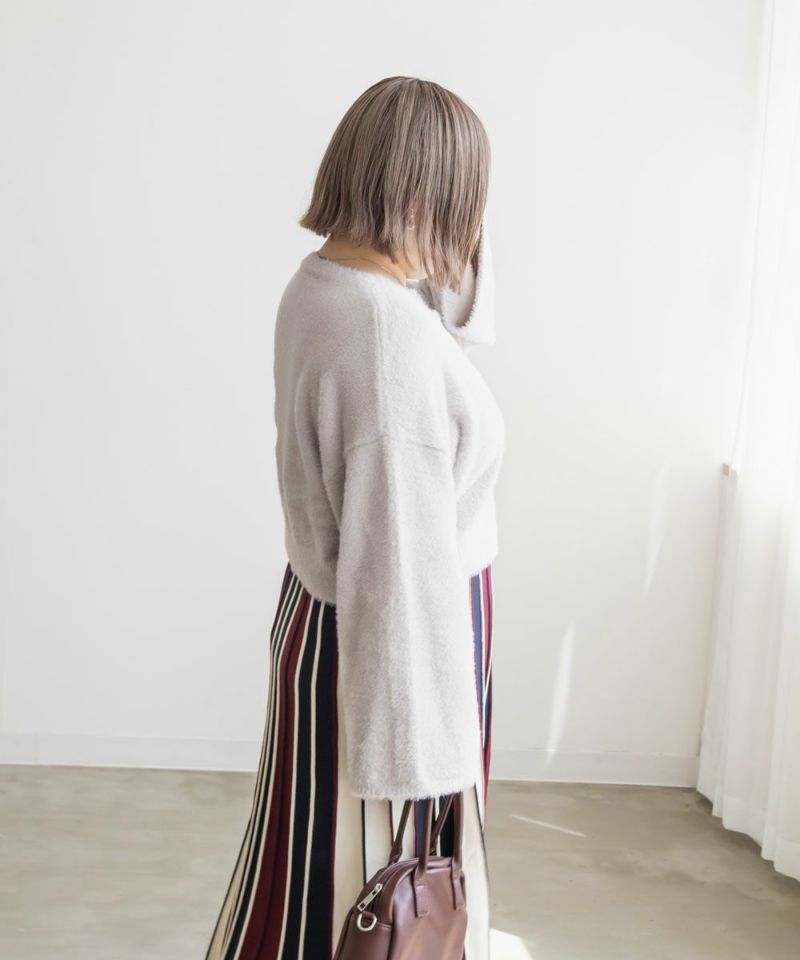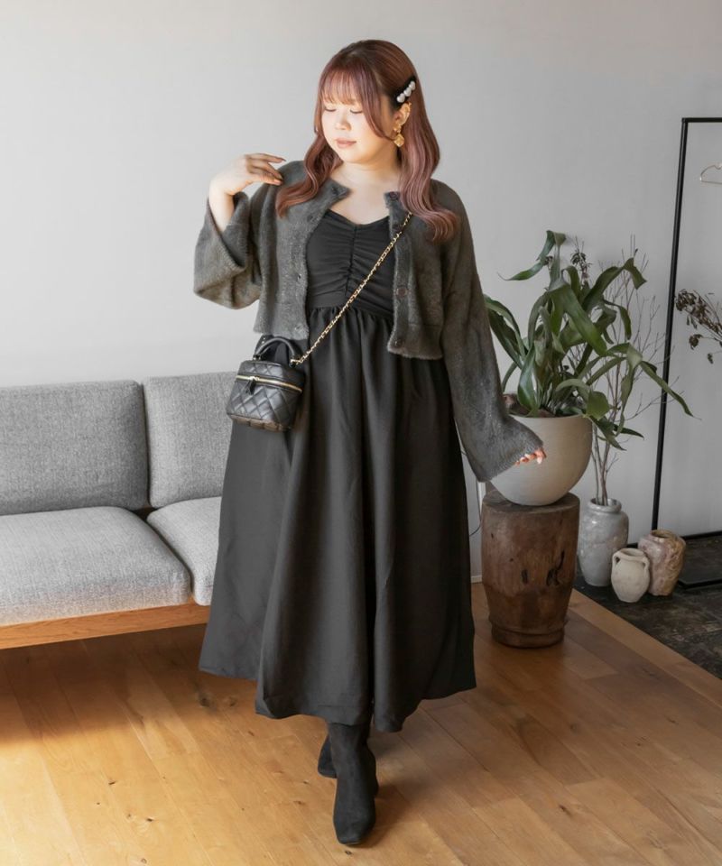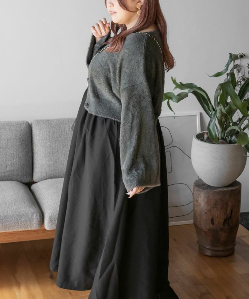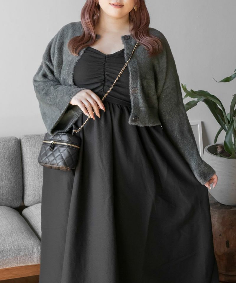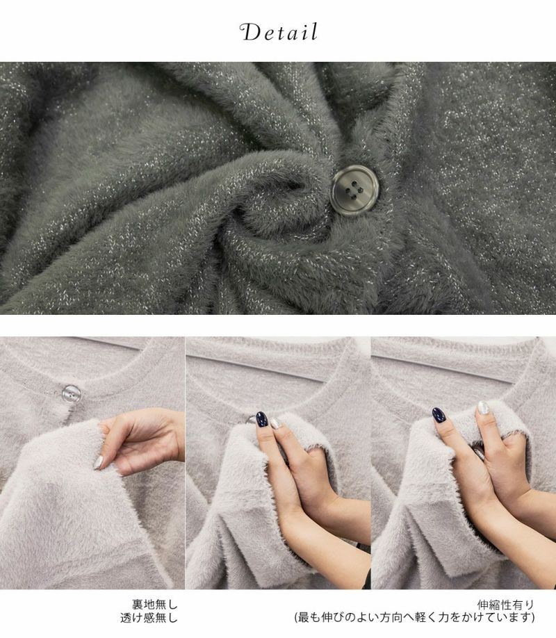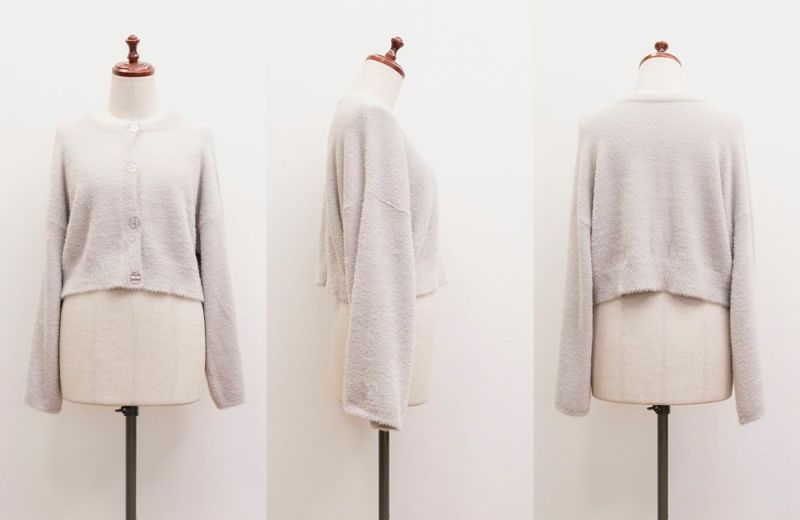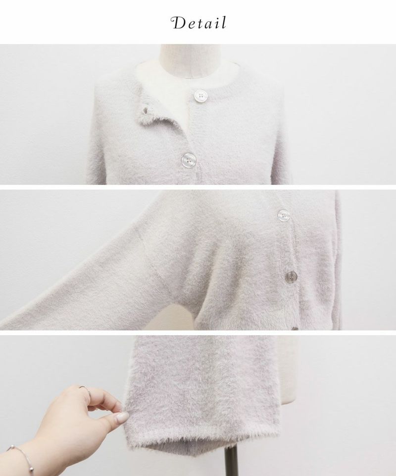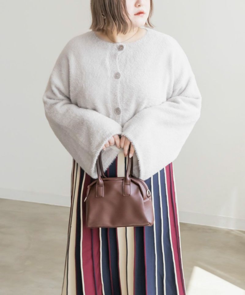 3Lサイズを着用してぴったりのサイズでした!やわらかくて伸びがいいニットだったのでいつも通りのサイズ選びで問題なさそうです◎ゆるっと着たい場合はワンサイズアップしてもいいかもしれません◎暖かみのあるふわふわしたシャギー素材がトレンド感があり女性らしい1枚です!程よくショート丈ですっきりとした印象で着こなせます!そこまで厚みがないので、ジャケットやコートと重ねてもごわつきにくそうでした♪秋冬春と長いシーズン使えるカーディガンは持っていて損なしです!