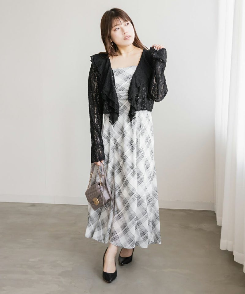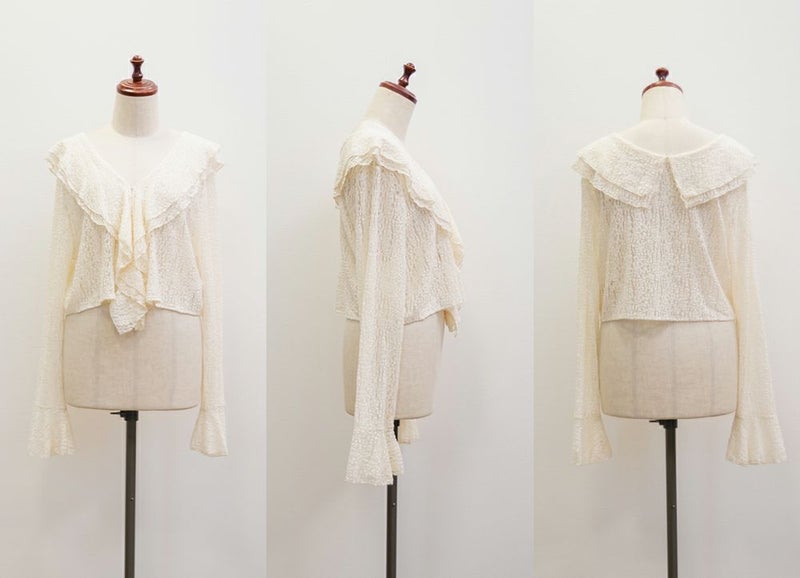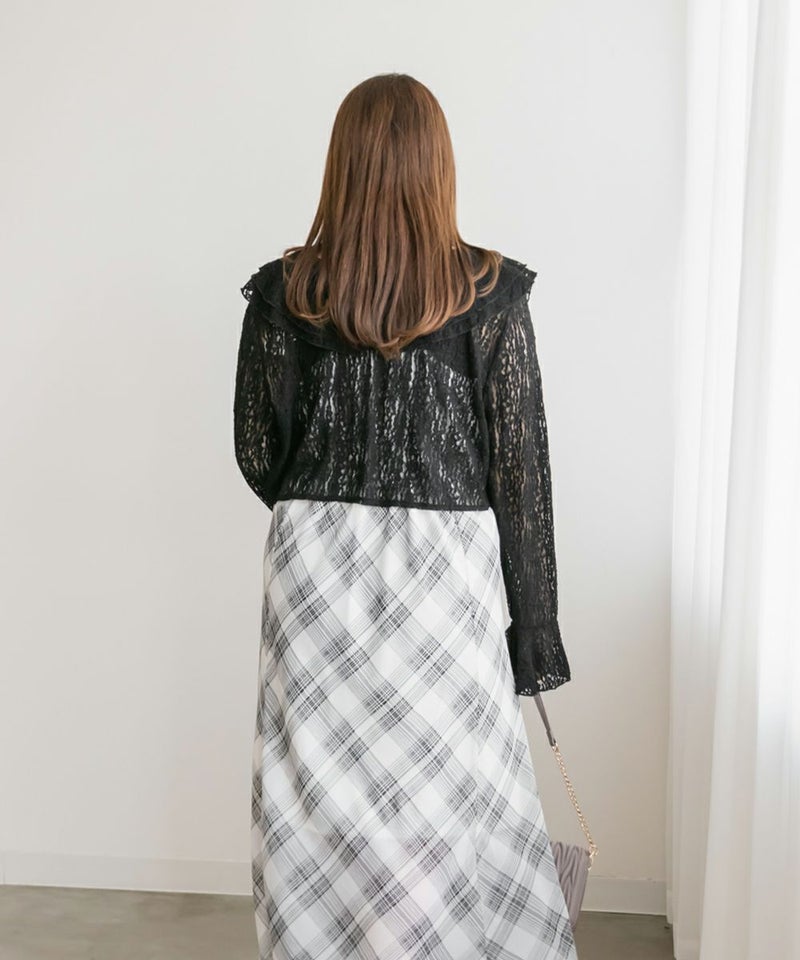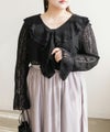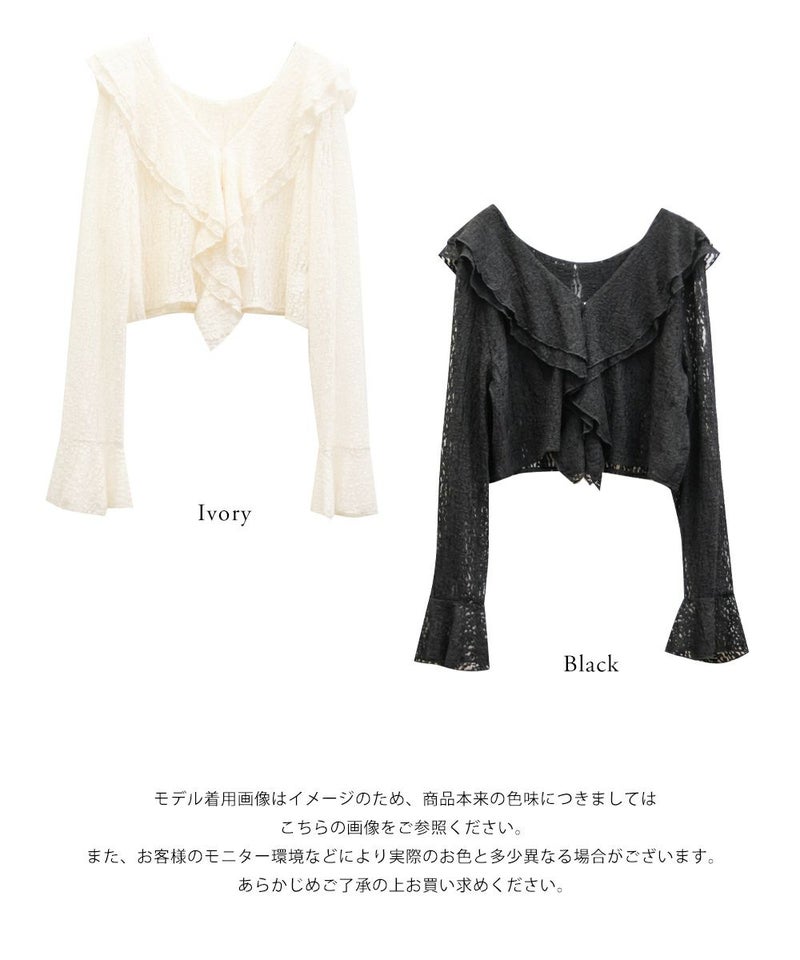 クレット 大きいサイズ シアー カーディガン フレア 襟 ショート丈 トップス プルオーバー フリルレースボレロ