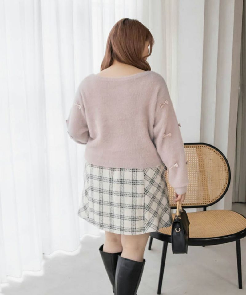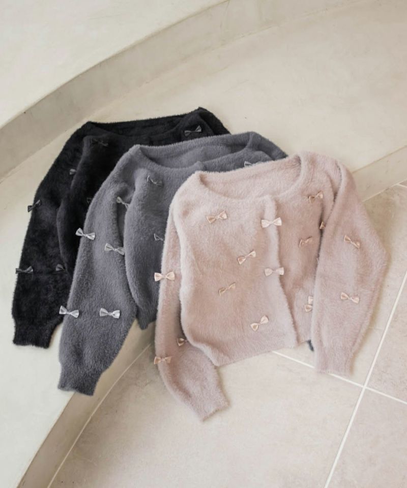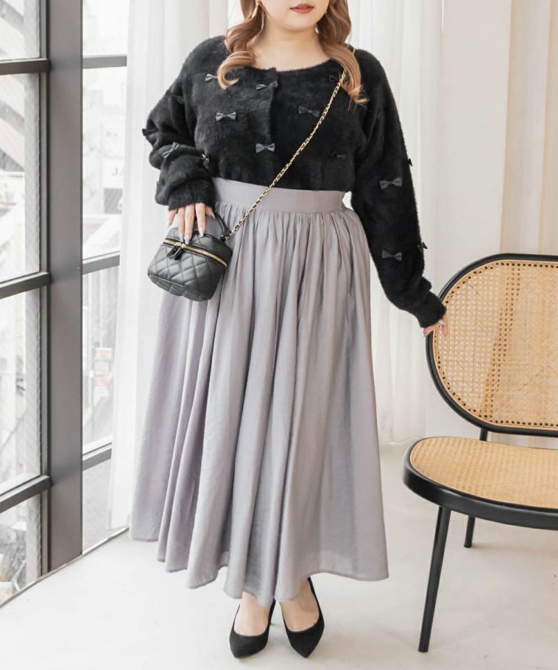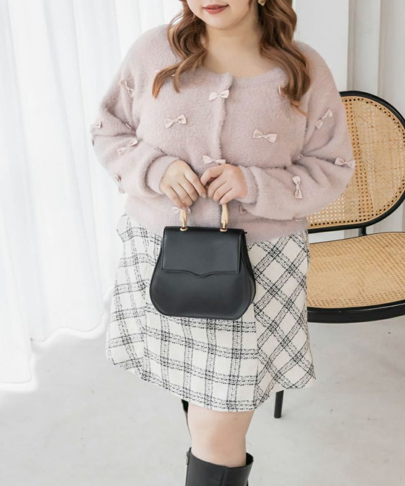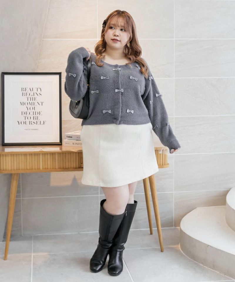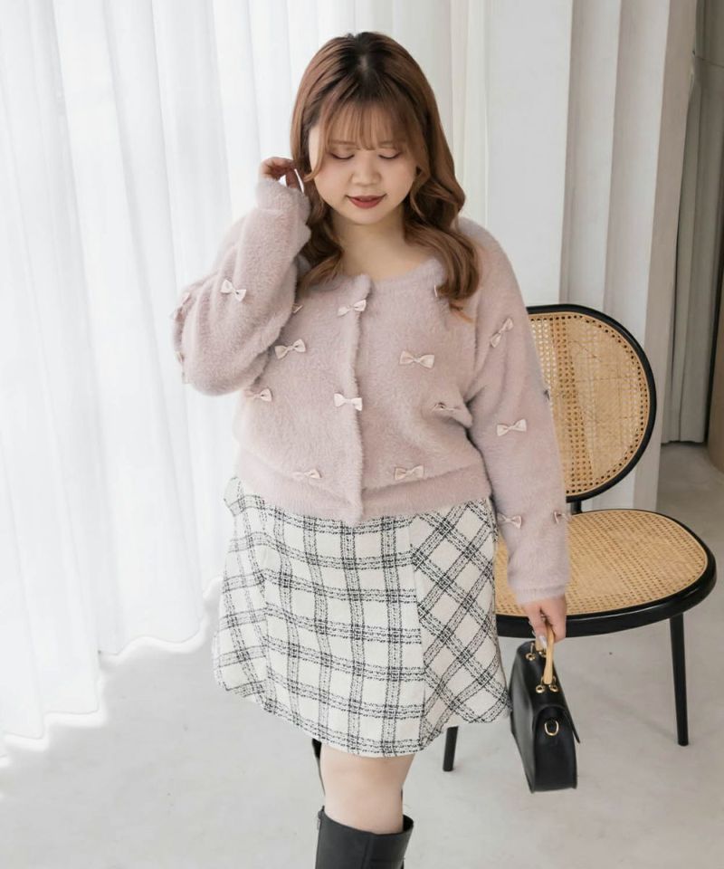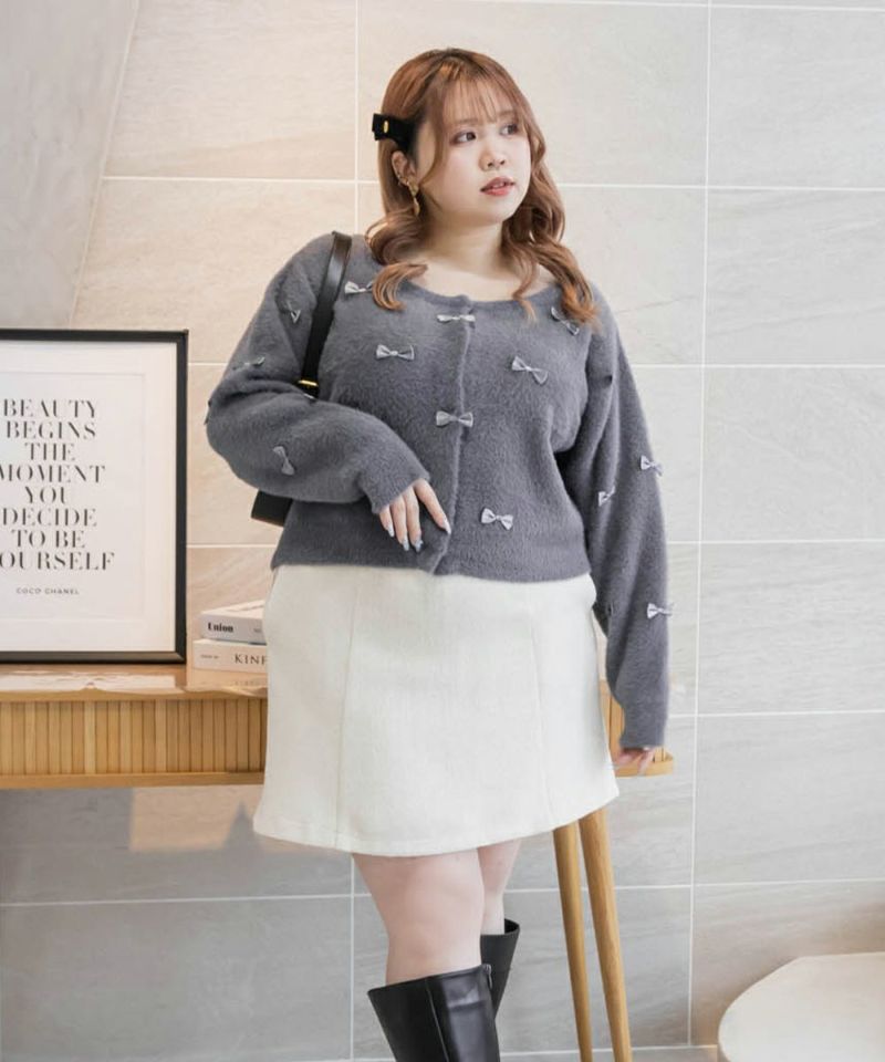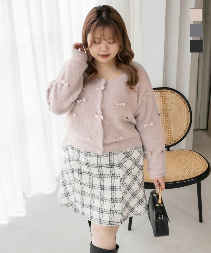 大きいサイズ ぽっちゃり CLETTE リボンカーディガン ボレロ フェミニン デート服 着回し  LL 3L 4L CLETTEオリジナル★リボン使いシャギーニットカーディガン