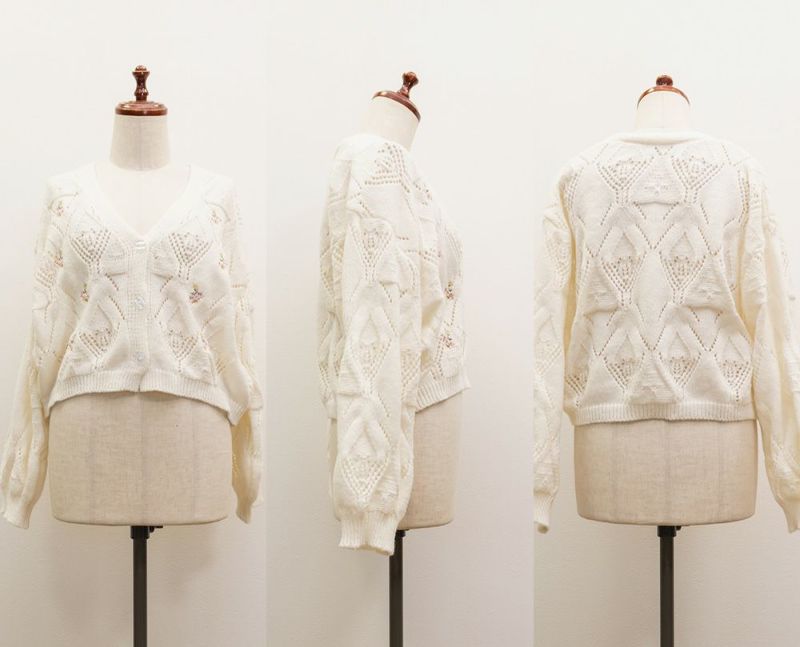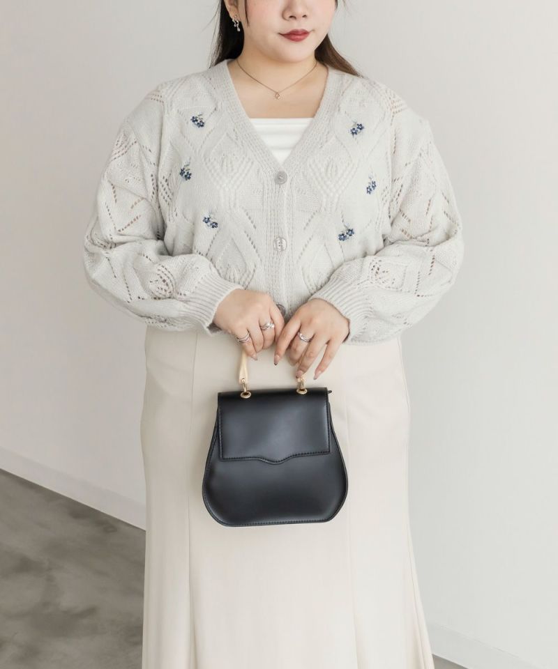 3Lサイズを着用してぴったりのサイズでした。透かし編みのざっくり感がかわいいカーディガンで、トップスとしても羽織としても着回しできる万能アイテムです!花柄の刺繍がポイントになってとっても可愛いです◎スカートやパンツはもちろんワンピースにも相性良くコーデできます♪インナーをタンクトップから長袖にしたりして長いシーズン着回しできるのも嬉しいです。