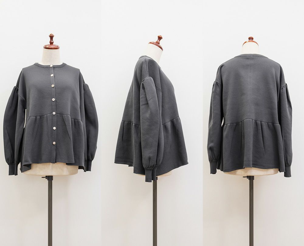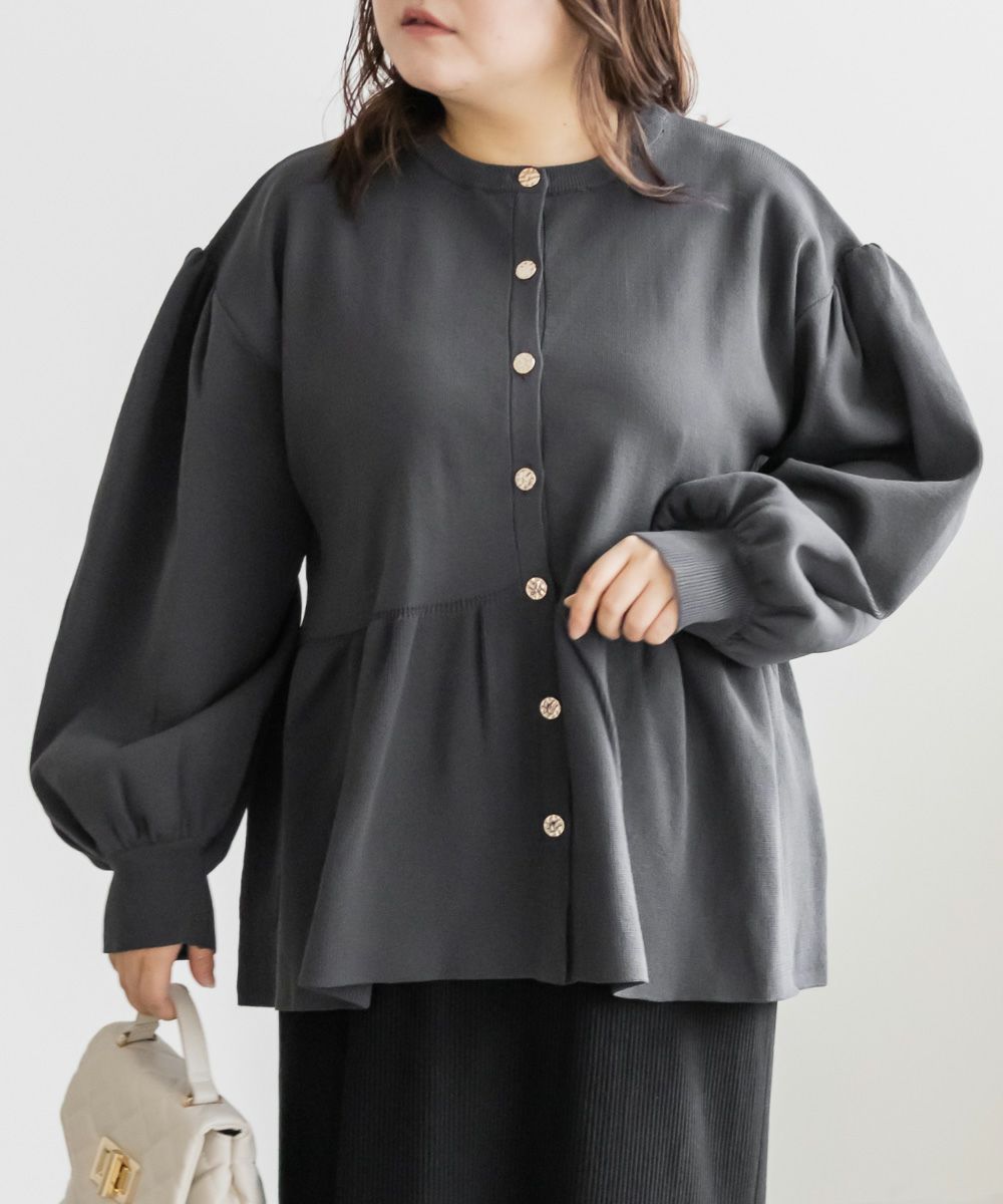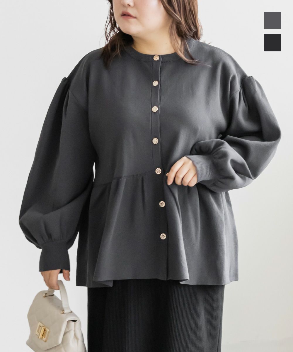 3Lを着てゆとりがありました。軽いスポンジニットのカーディガンで着心地はらくちんです!お腹や腰回りをカバーする、ペプラム切替になっていてすっきりと着やせできるデザインです!フロントはゴールドボタンでメリハリのある印象です。二の腕まわりもゆとりがあってニットだけどピタッとしないのが嬉しいです!パンツやコンパクトなシルエットのスカートと合わせるのがお勧めです♪