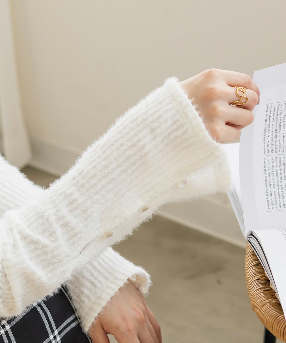 ふわふわとしたシャギーのような起毛感が可愛いカットソー。裏面は起毛感が少なくて着心地も暑すぎないから、秋や春も着用可能。伸縮性のある生地だからストレスフリーな着心地。
