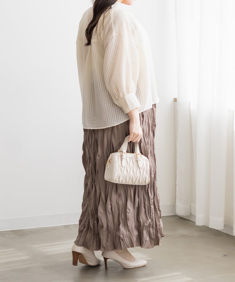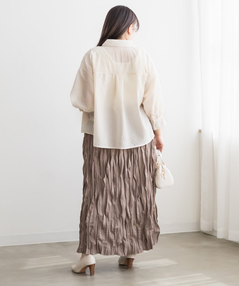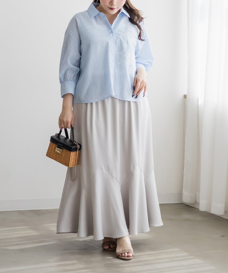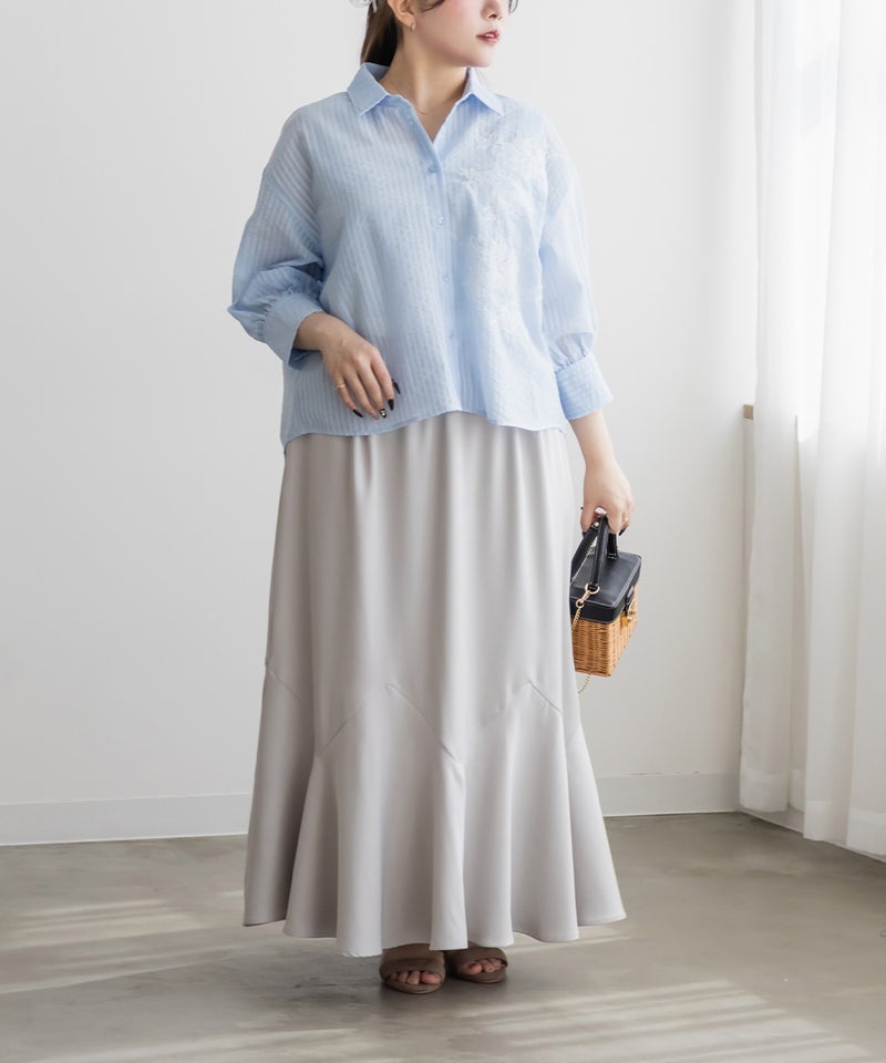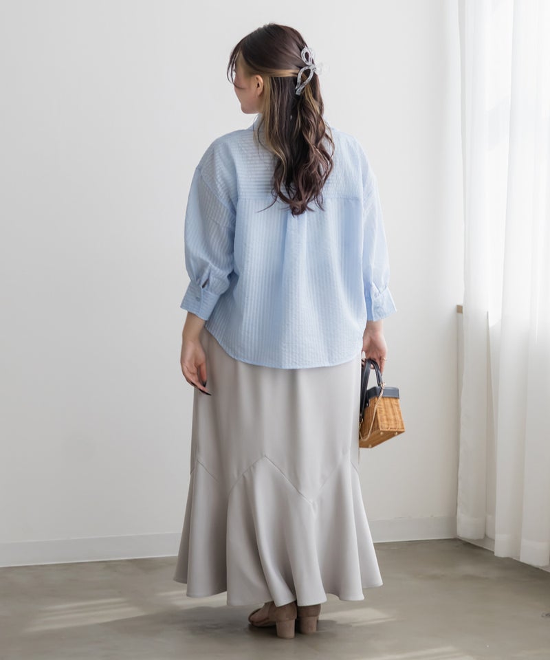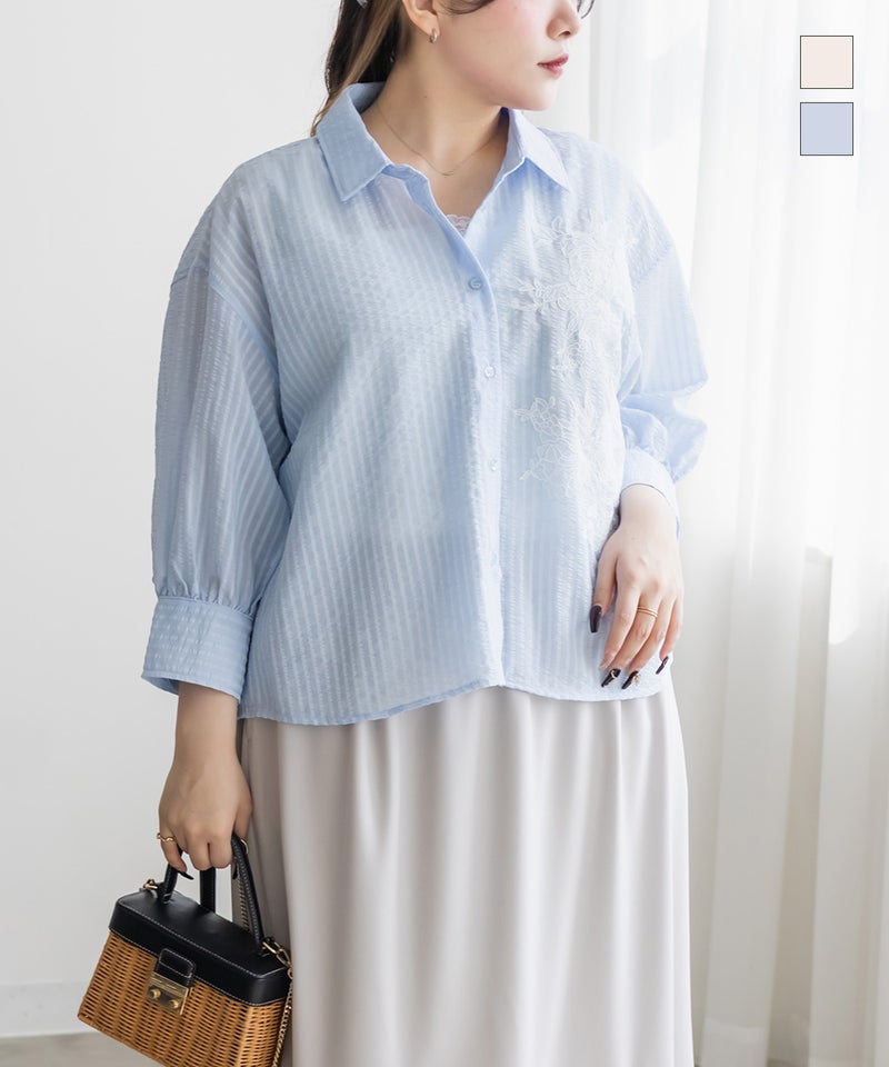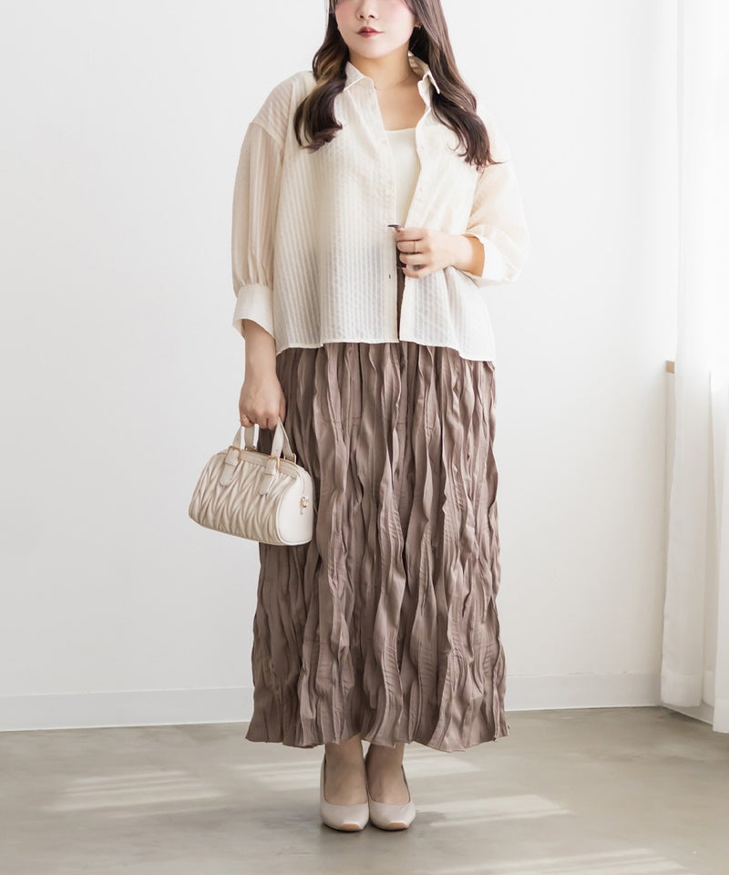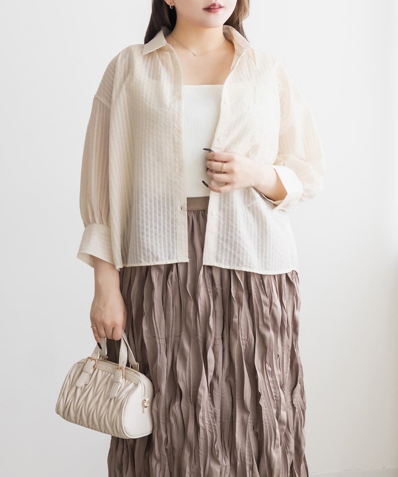 3Lサイズを着用してちょうどいいサイズ感でした!シアーなストライプ素材が軽やかで、レースのディテールがさりげなく華やかさをプラスしてくれる一枚です◎長すぎない丈なのでバランスが取りやすく、すっきり着られました♪さらっと羽織るだけでもコーデがこなれて見えて、インナー次第でいろんな着こなしが楽しめるのも嬉しいポイントです!真夏の日焼け・冷房対策にもおすすめの1枚です。