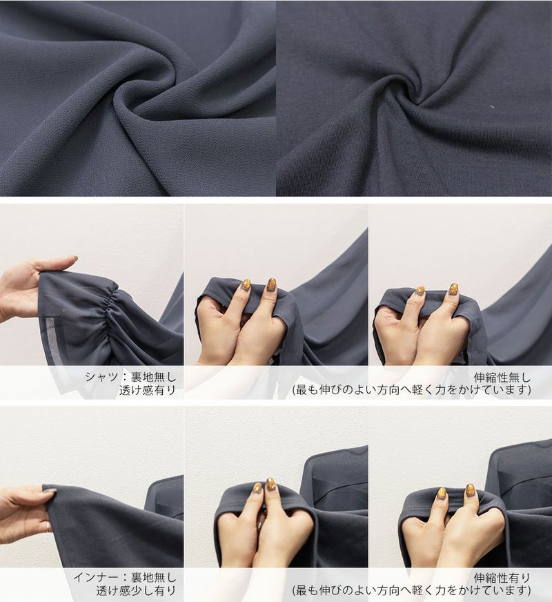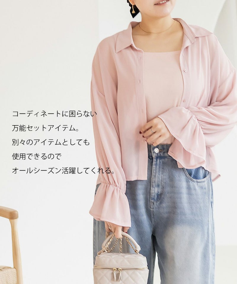 3Lサイズを着用しました。タンクトップは伸縮性もあって着心地ラクチンでした。シャツも程よくゆとりがあって動きやすく、軽やかな着心地です!透け感が可愛いシアー素材ですが、インナー付きなので1枚で安心して着られました◎インナーは太めの肩紐がついていて、インナーに困らないのが嬉しいです!シアーの素材が上品で、カジュアルにもきれいめにも合わせやすい万能アイテムです。シャツの丈は短めなので、アウトしてちょうどよくスタイルアップして見えました!それぞれ単品で使いやすいアイテムなので、持っておきたい1セットです♪