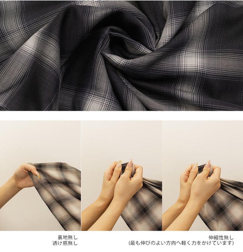 3Lサイズを着用してゆるっと着られるサイズ感でした!すこしとろみのあるさらっとした生地感で肌当たりも良く軽い着心地です◎ヒップが隠れる少し長めの丈感で、体型カバーもしてくれます!1枚でさらっと羽織っても、アレンジしてビスチェ風にも楽しめる2wayデザインで、気分に合わせてスタイリング可能です♪中に肩紐がついていて、オフショルにしても着られます!ほかにも前開きにしたり、ウエストを結んで女性らしく着崩したりとシーンに合わせて色々な着回しができました。季節の変わり目にも軽い羽織りとしても活躍して、秋らしいチェック柄がいまっぽい1枚です!