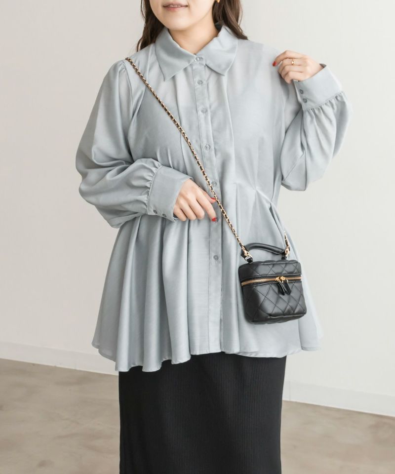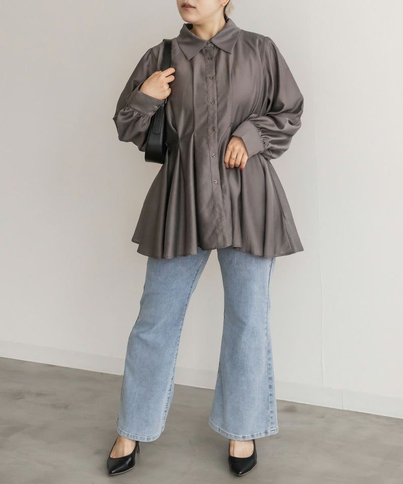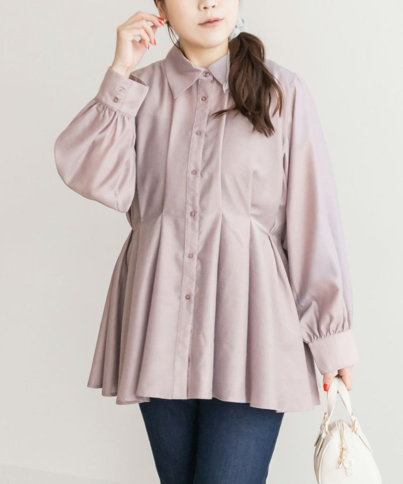 3Lサイズを着用して、程よくゆとりがある着心地で、ちょうどよく着られました!ペプラムシルエットがウエストをキュッと見せてくれ、タックが入っているので脚長&着痩せ効果も抜群です!大人っぽく上品ながら、程よく透け感のある生地がフェミニンさをプラスしてくれるブラウスです。袖もふんわりボリュームがあり、窮屈なく綺麗なシルエット感です◎切替が高い位置なのでスタイルアップできるだけでなく、気になる腰回りのカバーもしてくれます。オフィススタイルなどきっちりしたシーンにもおすすめです!