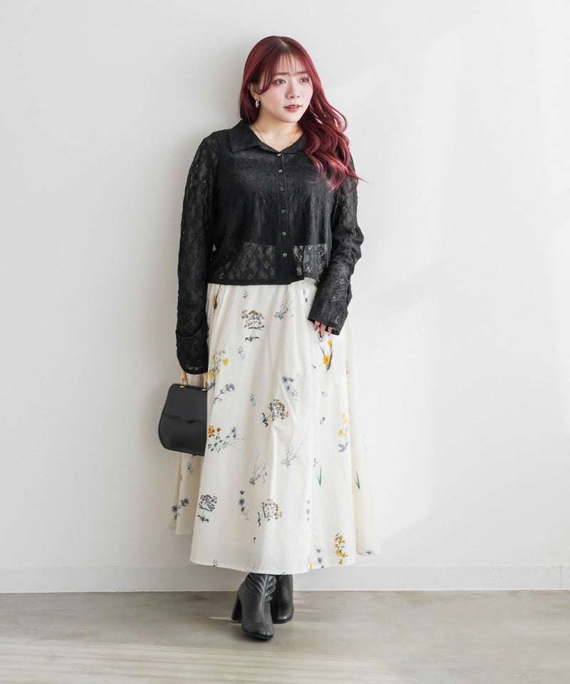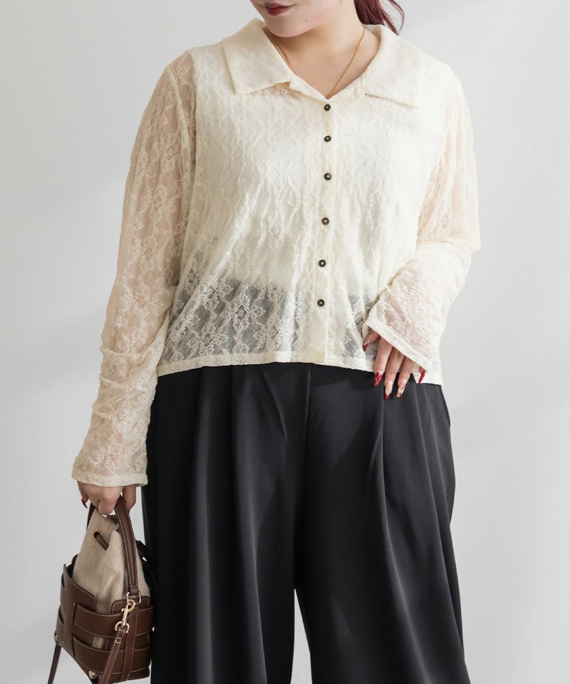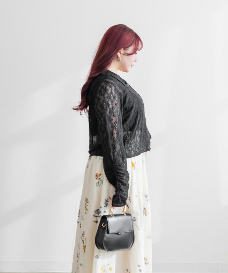 3Lを着て着用感はちょうどよく、伸縮性のあるレース素材なので窮屈さは感じませんでした。襟の開きがきれいで、デコルテや肩まわりがすっきり見えるのが嬉しいポイントです。