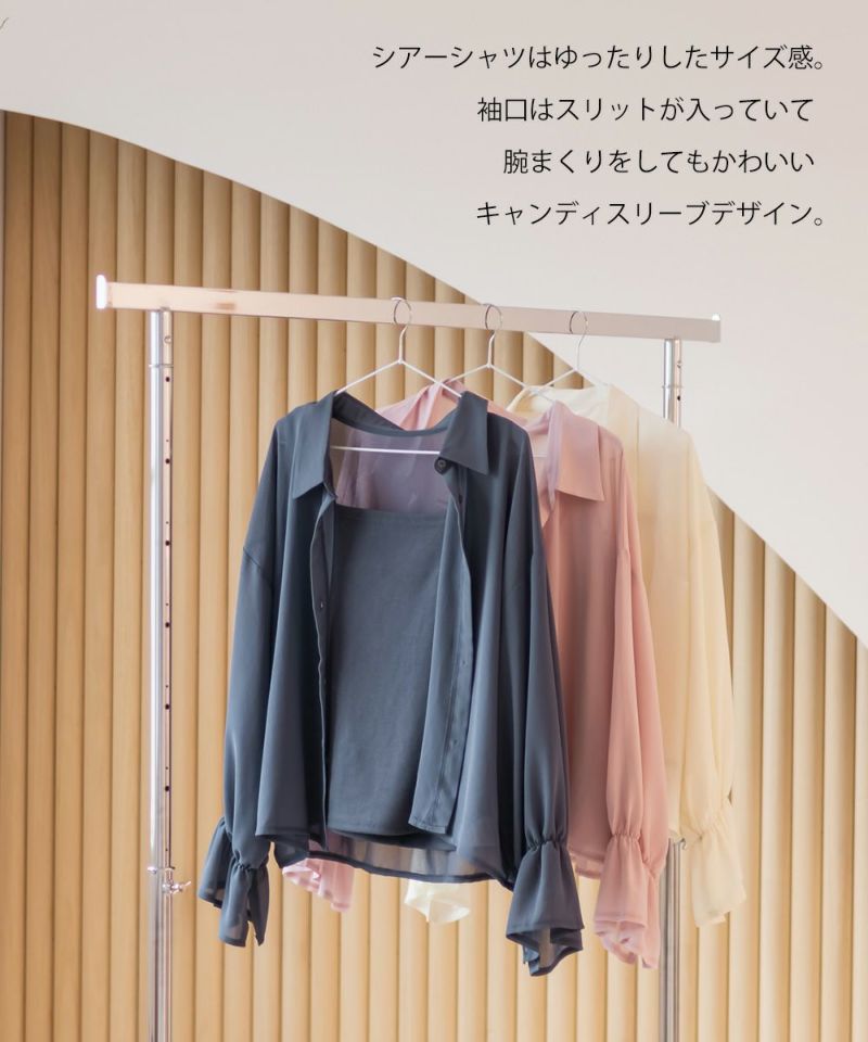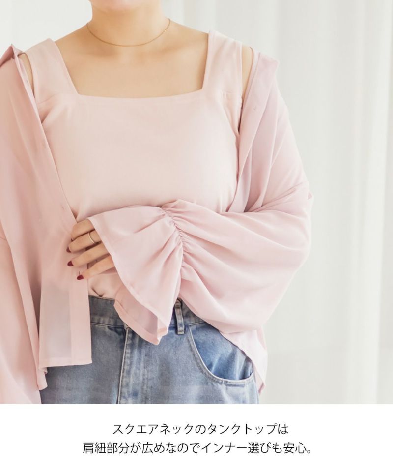 3Lサイズを着用しました。タンクトップは伸縮性もあって着心地ラクチンでした。シャツも程よくゆとりがあって動きやすく、軽やかな着心地です!透け感が可愛いシアー素材ですが、インナー付きなので1枚で安心して着られました◎インナーは太めの肩紐がついていて、インナーに困らないのが嬉しいです!シアーの素材が上品で、カジュアルにもきれいめにも合わせやすい万能アイテムです。シャツの丈は短めなので、アウトしてちょうどよくスタイルアップして見えました!それぞれ単品で使いやすいアイテムなので、持っておきたい1セットです♪