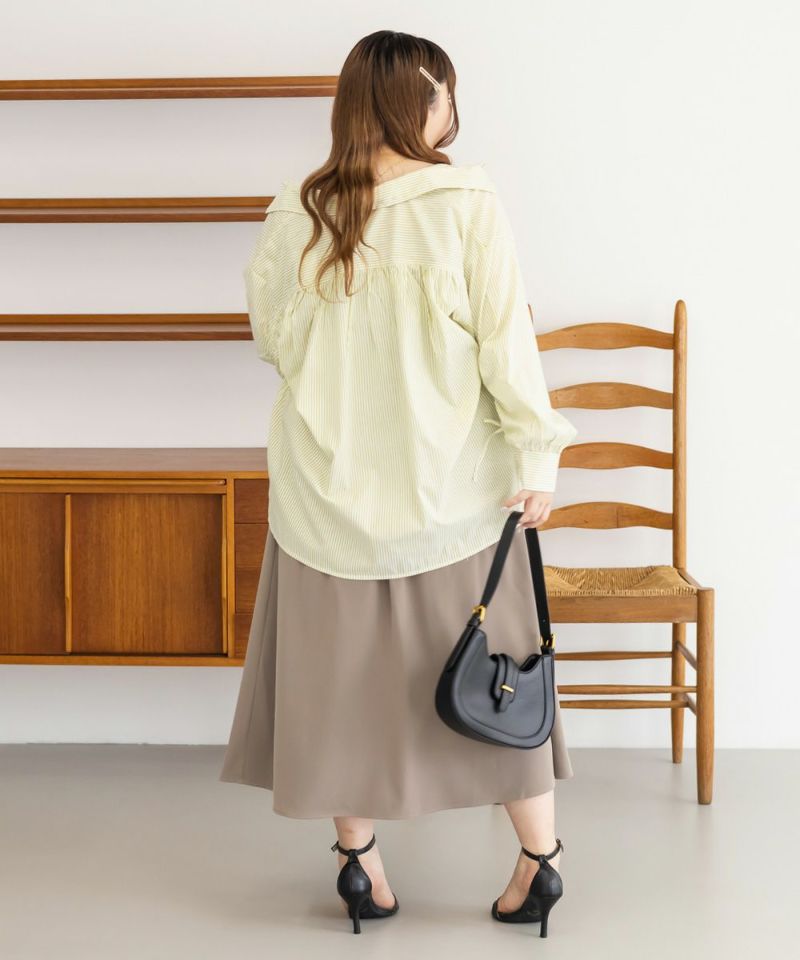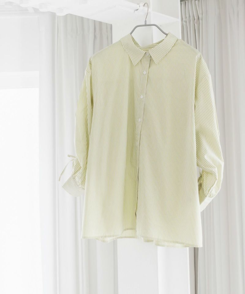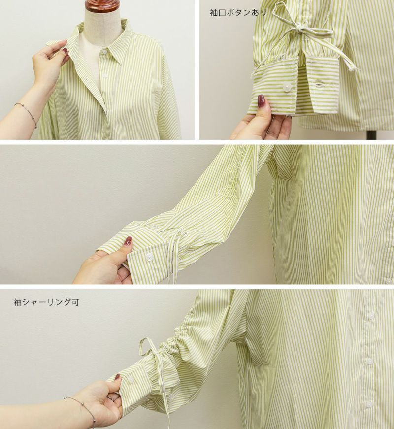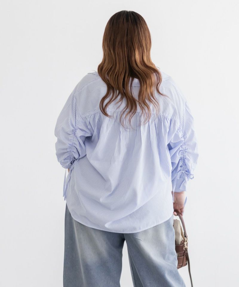 袖シャーリングストライプシャツ 袖シャーリングストライプシャツ