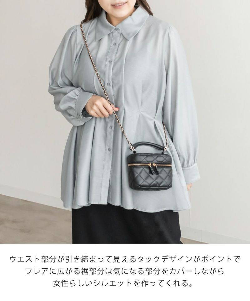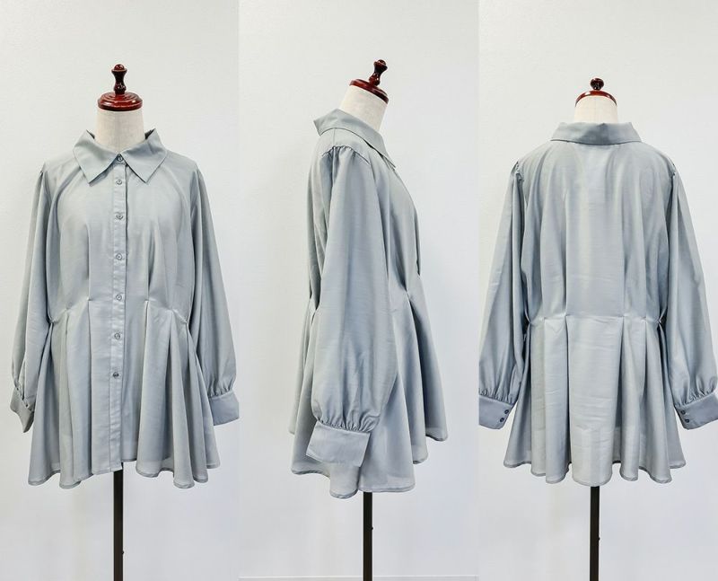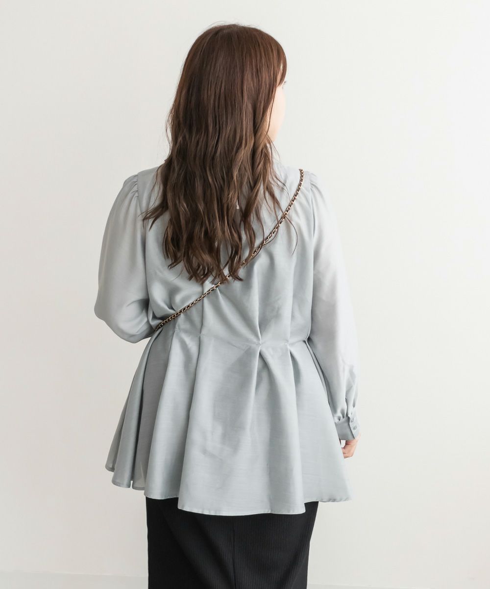 3Lサイズを着用して、程よくゆとりがある着心地で、ちょうどよく着られました!ペプラムシルエットがウエストをキュッと見せてくれ、タックが入っているので脚長&着痩せ効果も抜群です!大人っぽく上品ながら、程よく透け感のある生地がフェミニンさをプラスしてくれるブラウスです。袖もふんわりボリュームがあり、窮屈なく綺麗なシルエット感です◎切替が高い位置なのでスタイルアップできるだけでなく、気になる腰回りのカバーもしてくれます。オフィススタイルなどきっちりしたシーンにもおすすめです!
