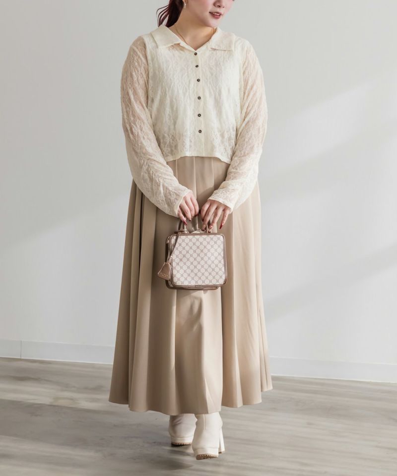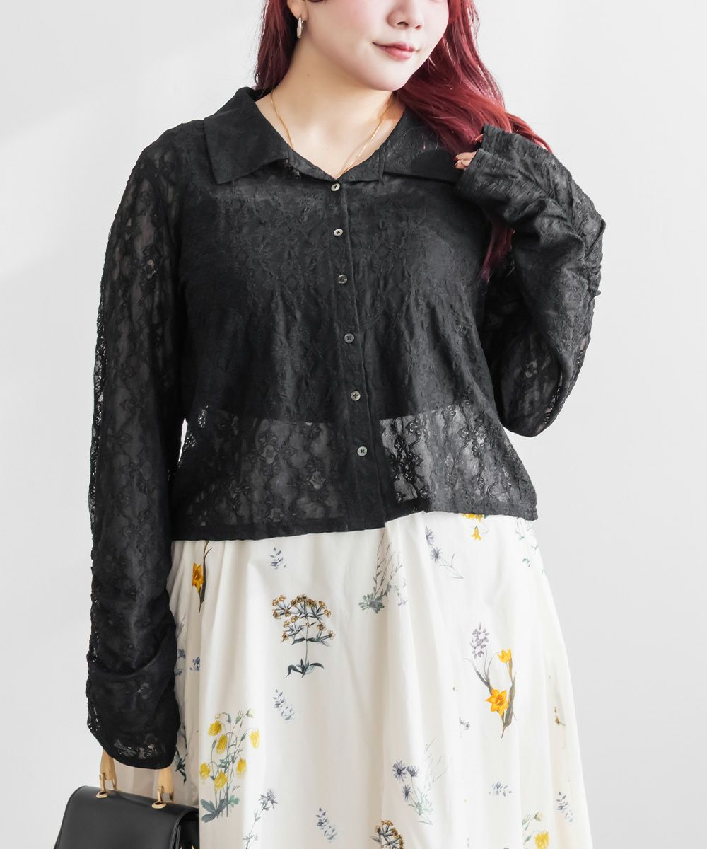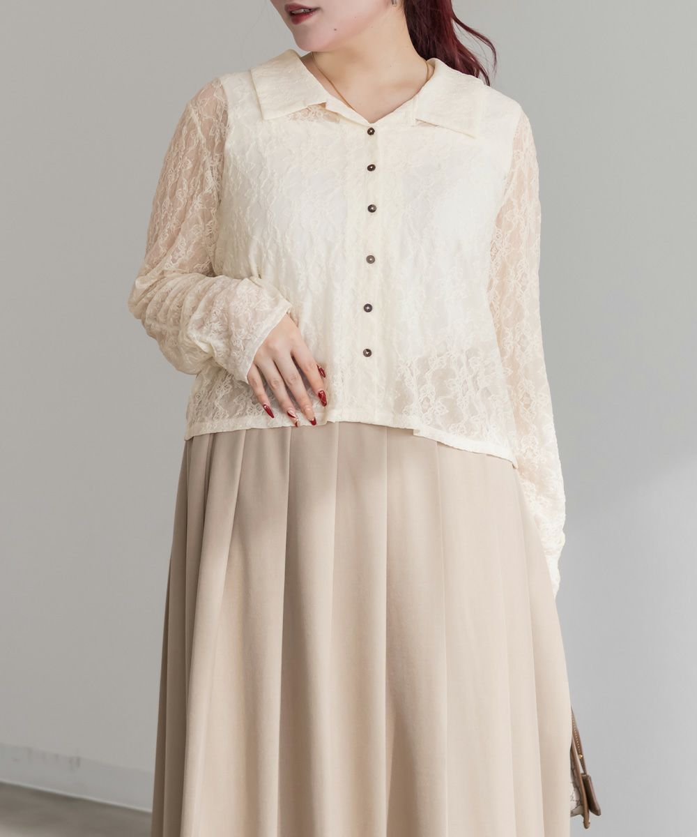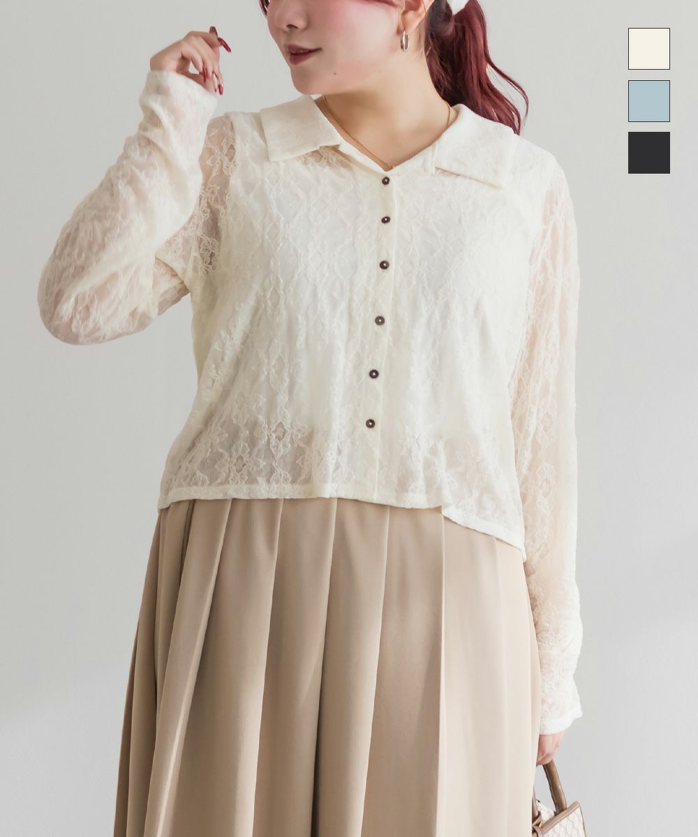 3Lを着て着用感はちょうどよく、伸縮性のあるレース素材なので窮屈さは感じませんでした。襟の開きがきれいで、デコルテや肩まわりがすっきり見えるのが嬉しいポイントです。