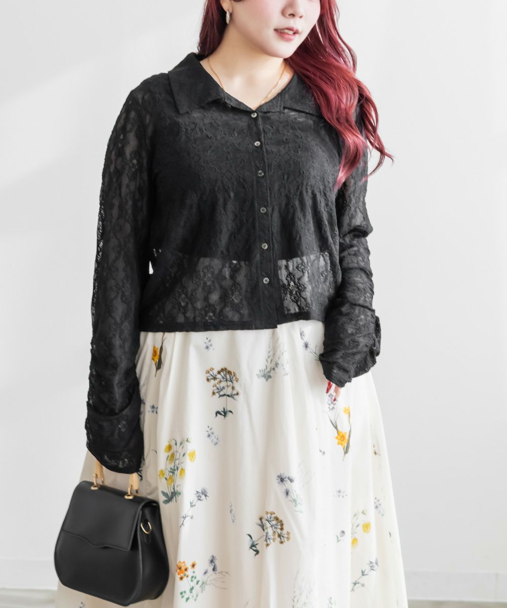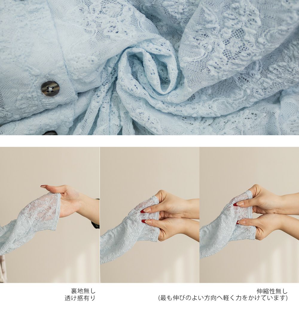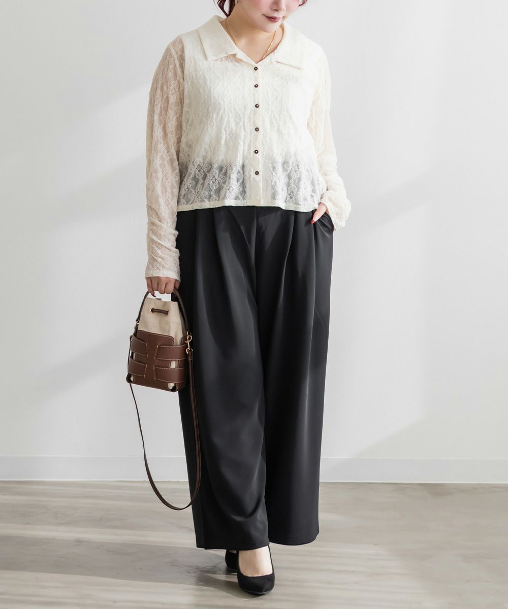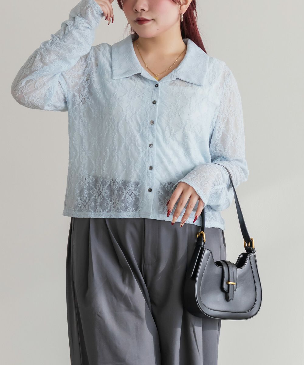 3Lを着て着用感はちょうどよく、伸縮性のあるレース素材なので窮屈さは感じませんでした。襟の開きがきれいで、デコルテや肩まわりがすっきり見えるのが嬉しいポイントです。