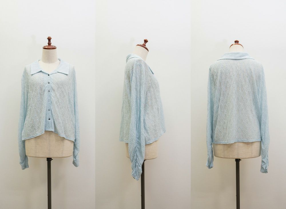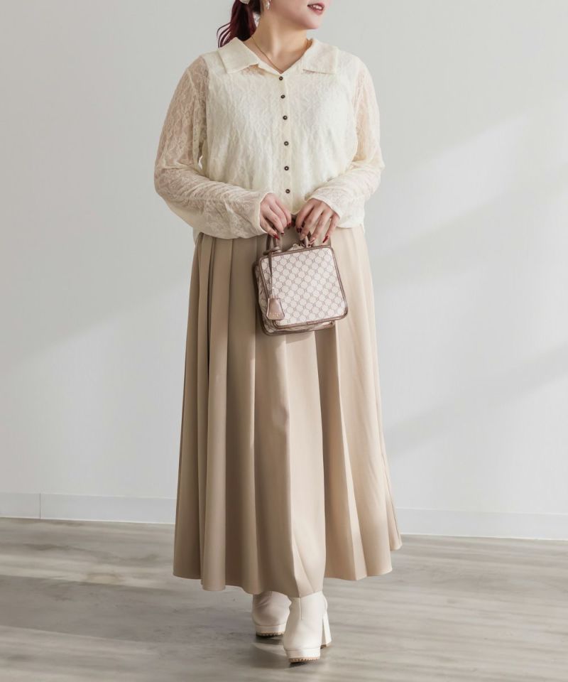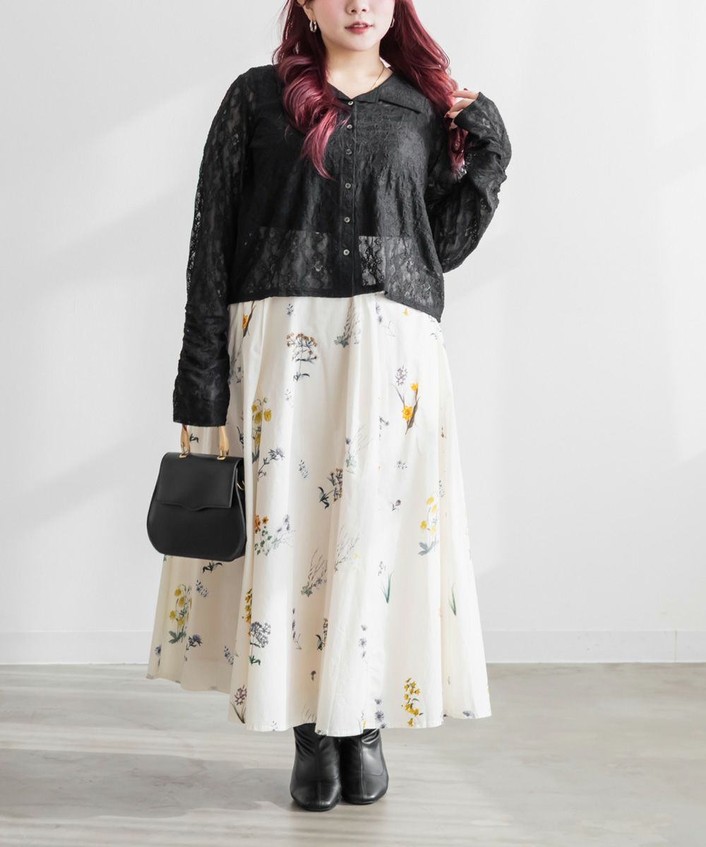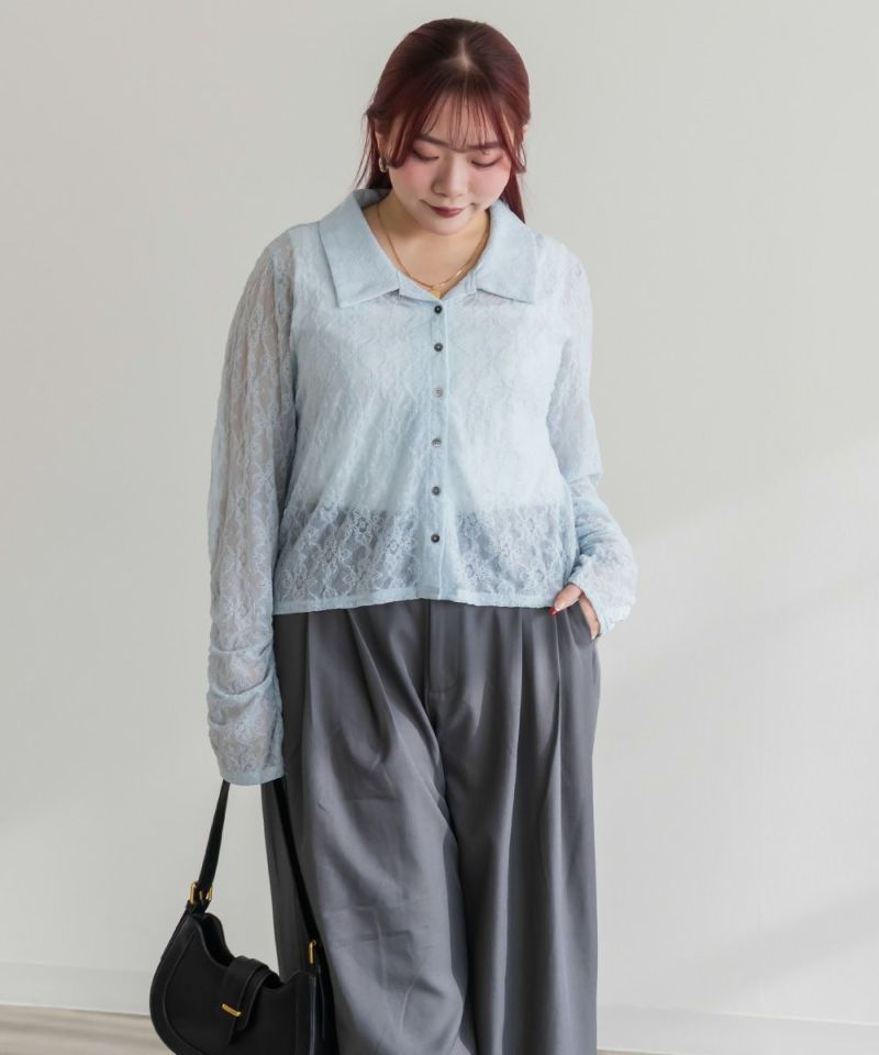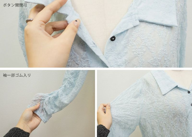 3Lを着て着用感はちょうどよく、伸縮性のあるレース素材なので窮屈さは感じませんでした。襟の開きがきれいで、デコルテや肩まわりがすっきり見えるのが嬉しいポイントです。