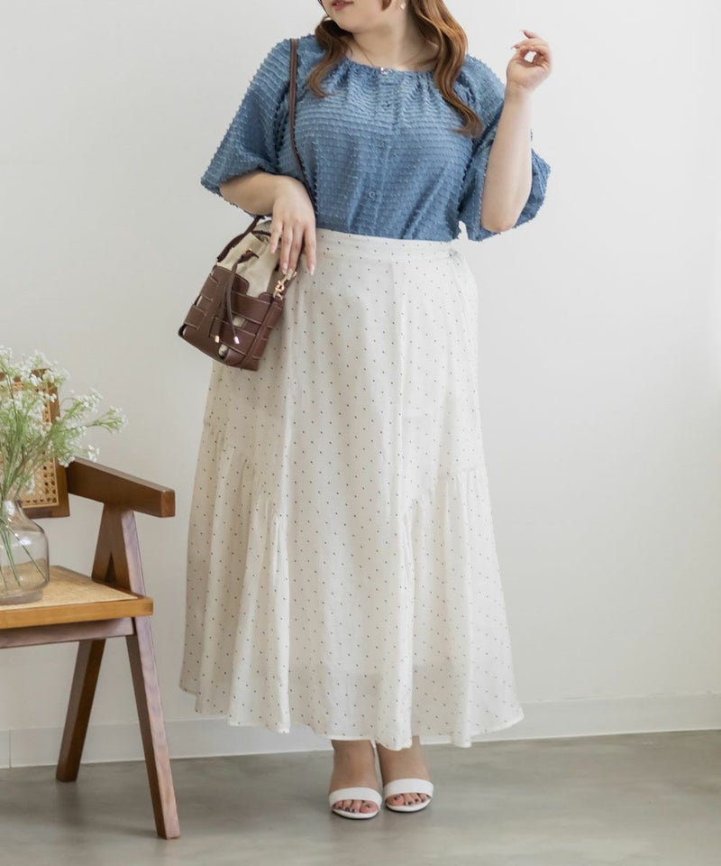 CLETTE オリジナル 水玉 ロングスカート シアースカート フレア LL 3L 4L クレット カジュアル フェミニン CLETTEオリジナル★サイドギャザーシアードットスカート ¥ 5,940 税込 お気に入りに登録する