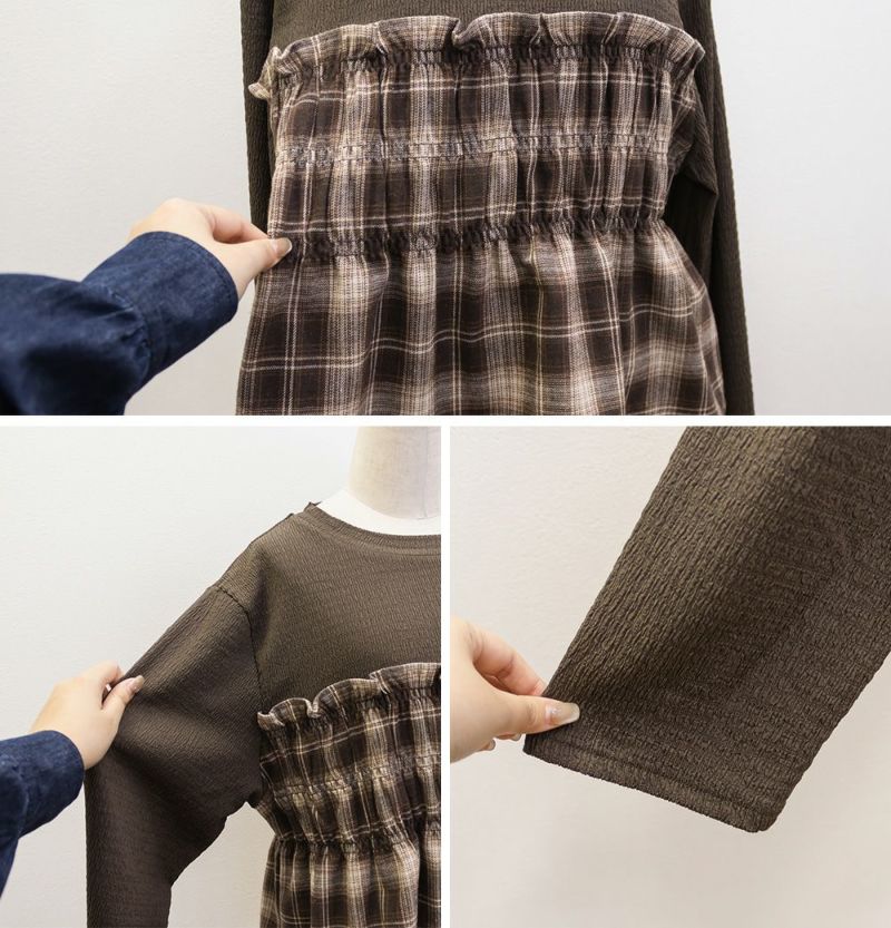 チェック柄ドッキングシャーリングブラウス チェック柄ドッキングシャーリングブラウス