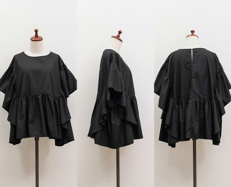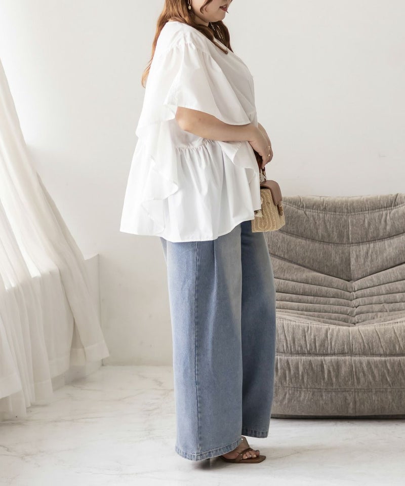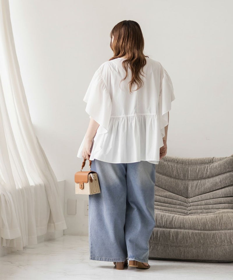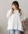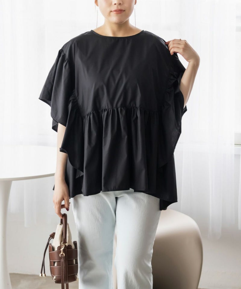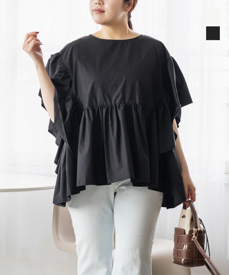 スクエア切替フリルブラウス 大きいサイズ クレット プラスサイズ 3L 4L フリル ブラウス スクエア切替フリルブラウス