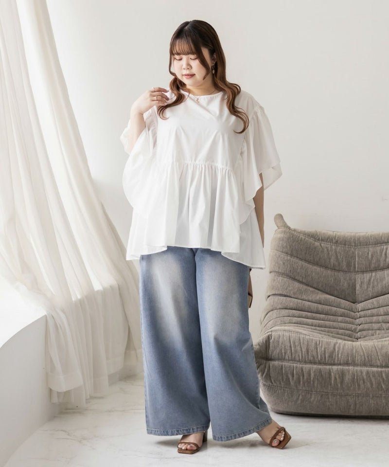 3Lオフホワイト maika:161cm/普段トップス3L・ボトム3L~4L着用