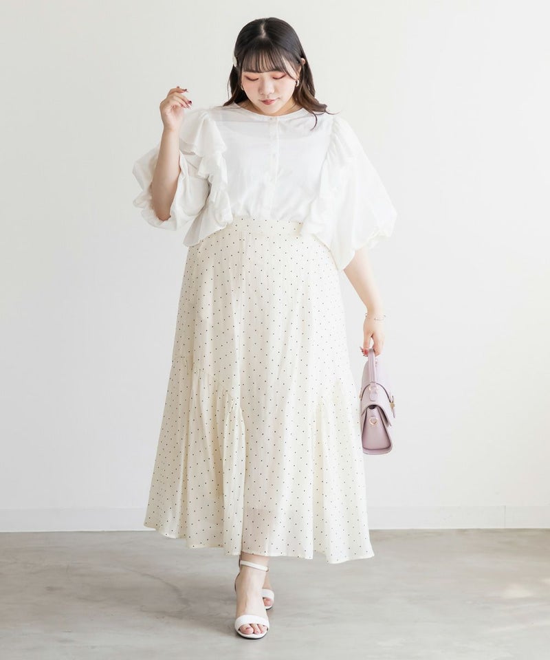CLETTE オリジナル 水玉 ロングスカート シアースカート フレア LL 3L 4L クレット カジュアル フェミニン CLETTEオリジナル★サイドギャザーシアードットスカート ¥ 5,940 税込 お気に入りに登録する
