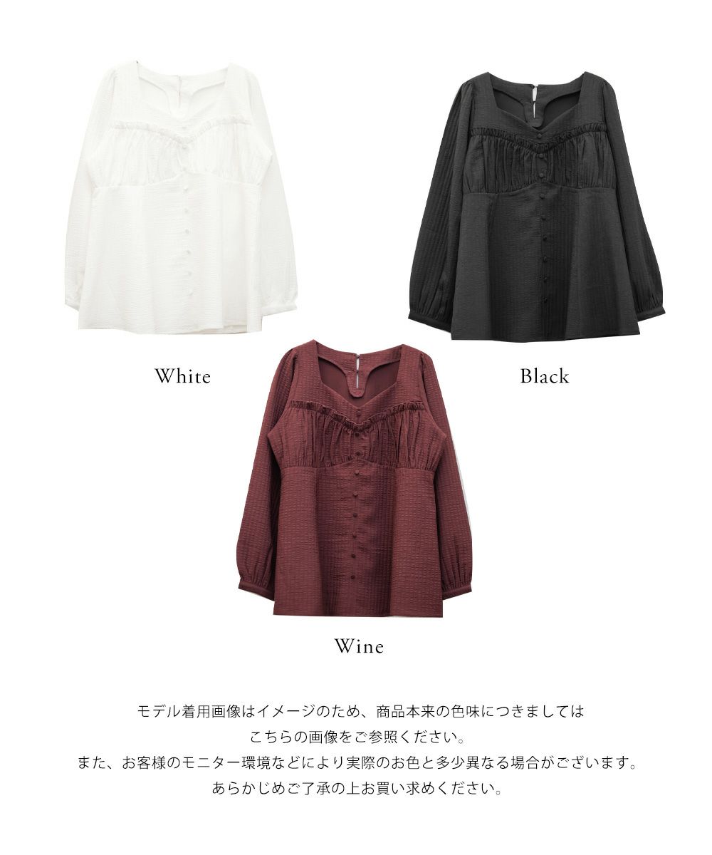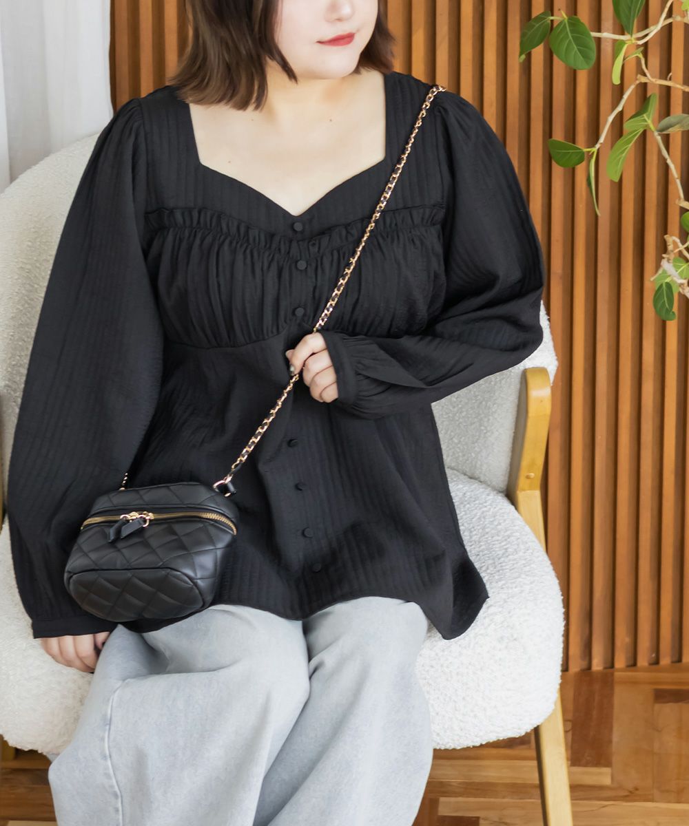LLサイズでぴったりしすぎず程よくゆとりのある着心地でした。ゴムはないデザインなのですっきり見え抜群です!切り替えが無いのに裾に向かってフレアになっていて、楽なのに華奢見えします!軽いブラウス地で、凹凸のある生地がボディラインもカバーしてくれます。胸元のデザインがフェミニンな雰囲気で、大人っぽくもあり華やかな雰囲気のブラウスです♪ふわっと広がり、くびれはある印象なのに気になるお腹や腰まわりも自然にカバーしてくれます。デニムを合わせてカジュアルに、スカートでガーリーにも着回せる万能アイテムです!オンオフ使えて、季節も長く使えるのであると嬉しい1枚です!