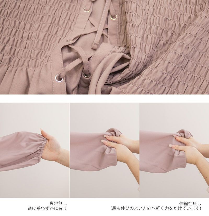 フロントのレースアップデザインが目線を上に集めてくれて、顔まわりも華やかな印象に♪ ふんわり広がるシルエットでお腹まわりや腰まわりもしっかりカバーできました。