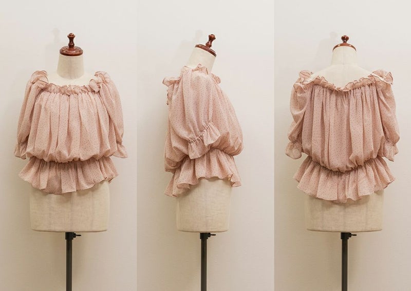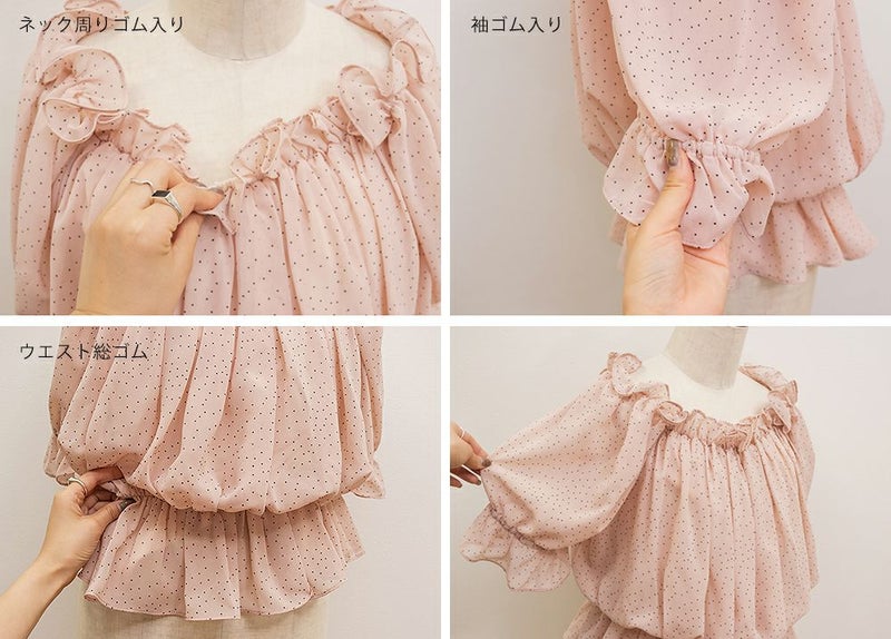 ギャザーデザインドットブラウス ギャザーデザインドットブラウス