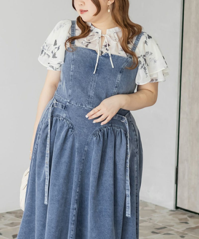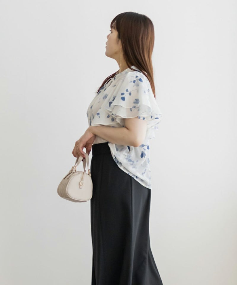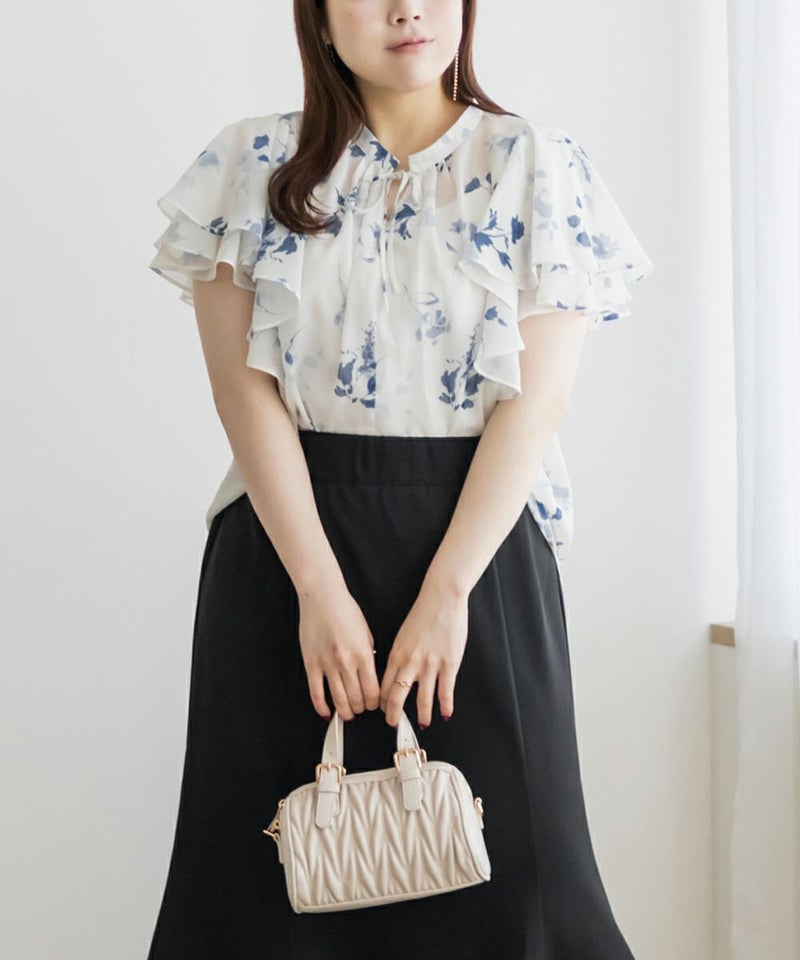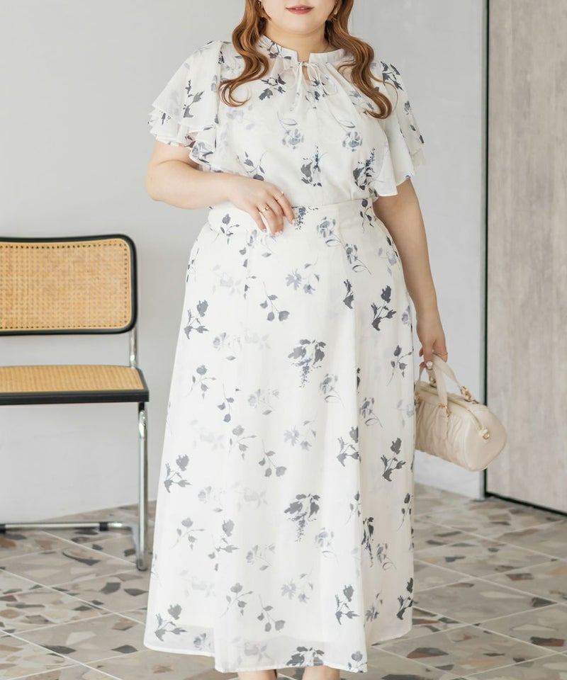 3Lサイズを着用してぴったりのサイズ感でした。伸びの無い素材なのでサイズ確認をお勧めします!透け感のある生地と大きめの花柄がどんなコーデにも合わせやすいです◎フリル袖のフェミニンなデザインも可愛い1枚で、シンプルなスカートや、デニム合わせしても相性良く着られます!キャミワンピやジャンスカなどのインナー使いも出来ちゃうので色々なコーディネートに活躍するブラウスです!