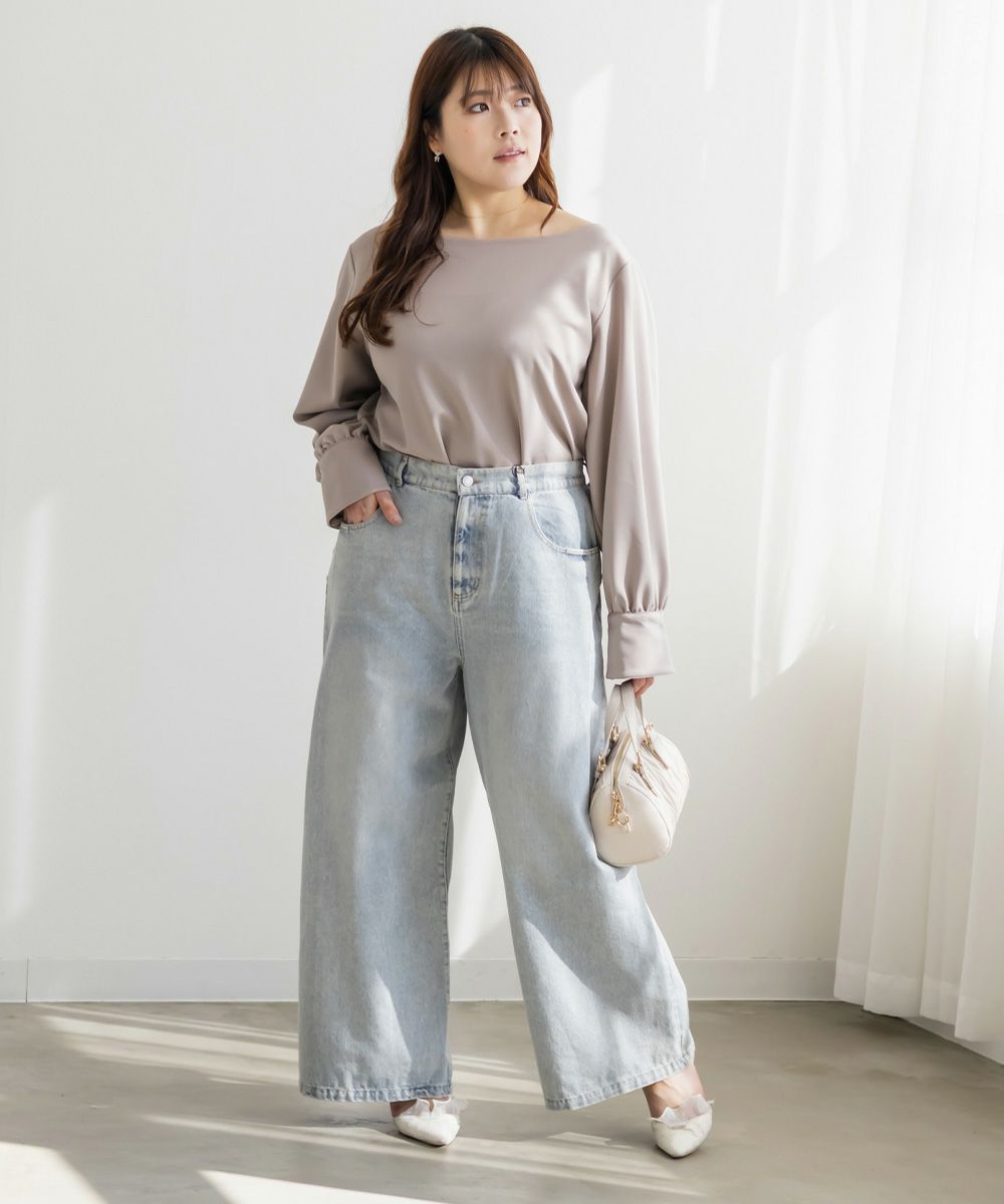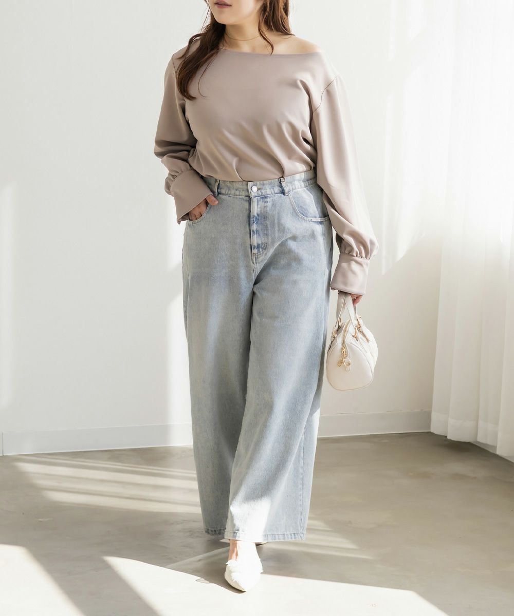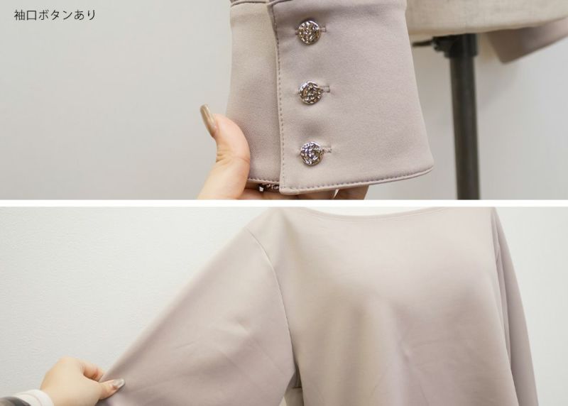 3Lサイズを着用して、ちょうどよくいつも通りのサイズ選びで問題なさそうでした。生地に伸縮性があって、程よくフィットしながらも窮屈さがなく、ちょうどいい着心地です♪ ボートネックの開きがデコルテをきれいに見せてくれ、片側だけ肩を落として着てもラインがきれいに決まり、今年っぽい抜け感が簡単に出せます◎ 袖のゴールドボタンが上品で、シンプルなボトムに合わせても華やかさがプラスされるのが嬉しいです!オンオフ問わず使いやすいので、ジャケットのインナーなどにも重宝しそうです!シーズンレスで使えるさらっとした生地感も魅力です。