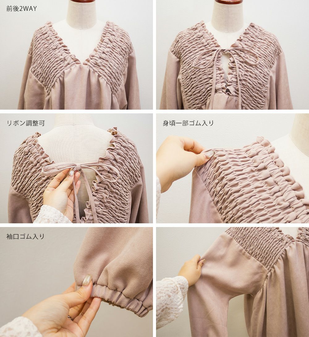 2WAYシャーリングVネックブラウス 2WAYシャーリングVネックブラウス
