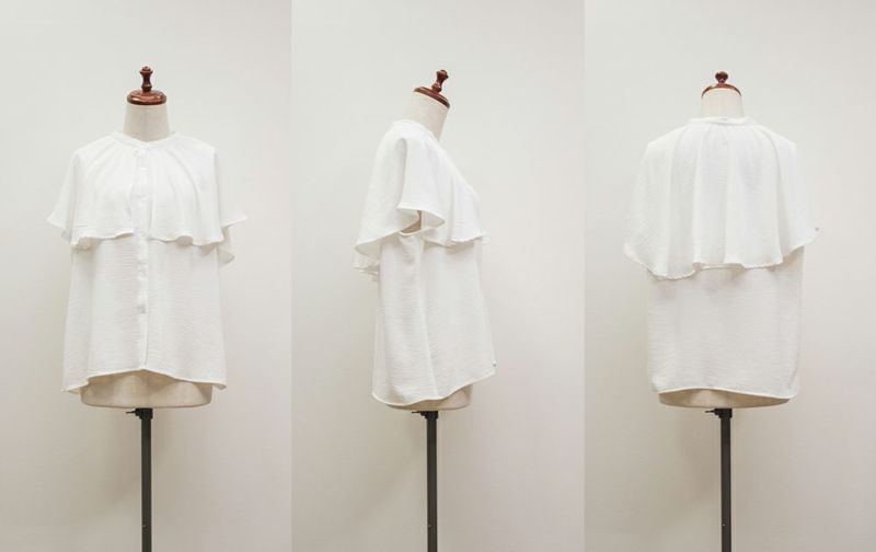 3Lサイズを着用してぴったりのサイズ感でした。大きなケープカラーが顔回りを小さくみせてすっきりとした印象に着やせできます◎さらりとした肌ざわりなので着心地も良かったです!フリルのようなケープデザインが上品なブラウスなのでパンツにもスカートにも合わせやすく色々な雰囲気のコーデで着回しできそうです。内側はノースリーブのケープデザインなので、気になる肩周りをカバーして涼しく着用いただけます。ちょうどいい丈感でスタイリングの幅も広がります◎