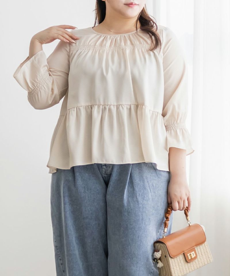 ギャザーシャーリングブラウス クレット 大きいサイズ プラスサイズ ブラウス 3L 4L 5L ギャザーシャーリングブラウス