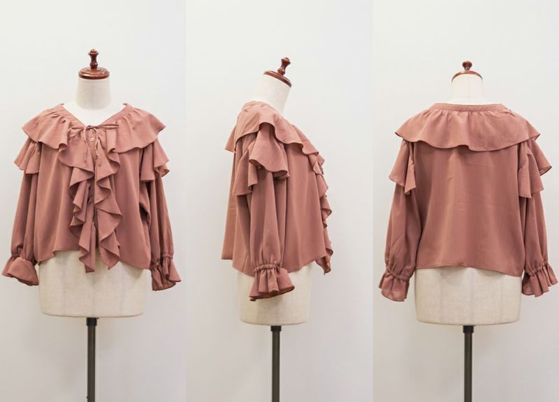 3Lを着て着用感はちょうどよく、肩まわりやバストにも程よくゆとりがあって、リラックスして着られました。胸元のリボンとフリル使いがポイントになった、華やかでガーリーな雰囲気のブラウスです♪ふわっと広がる袖のシルエットが可愛く、気になる二の腕も自然にカバーしてくれました◎首元は開きすぎず、Vネックなのですっきりとした印象で着られます。生地はさらっとしていて軽く、暑い季節でも快適に着られそうな印象でした。丈感も長すぎず短すぎずで、どんなボトムにも合わせやすいバランスです。