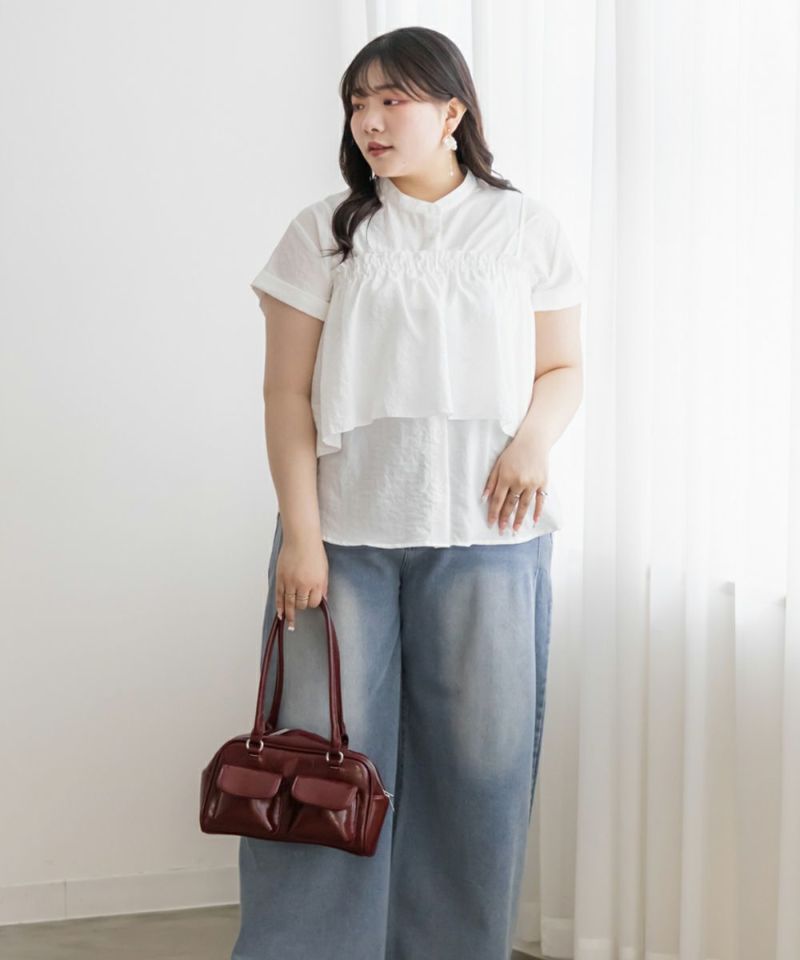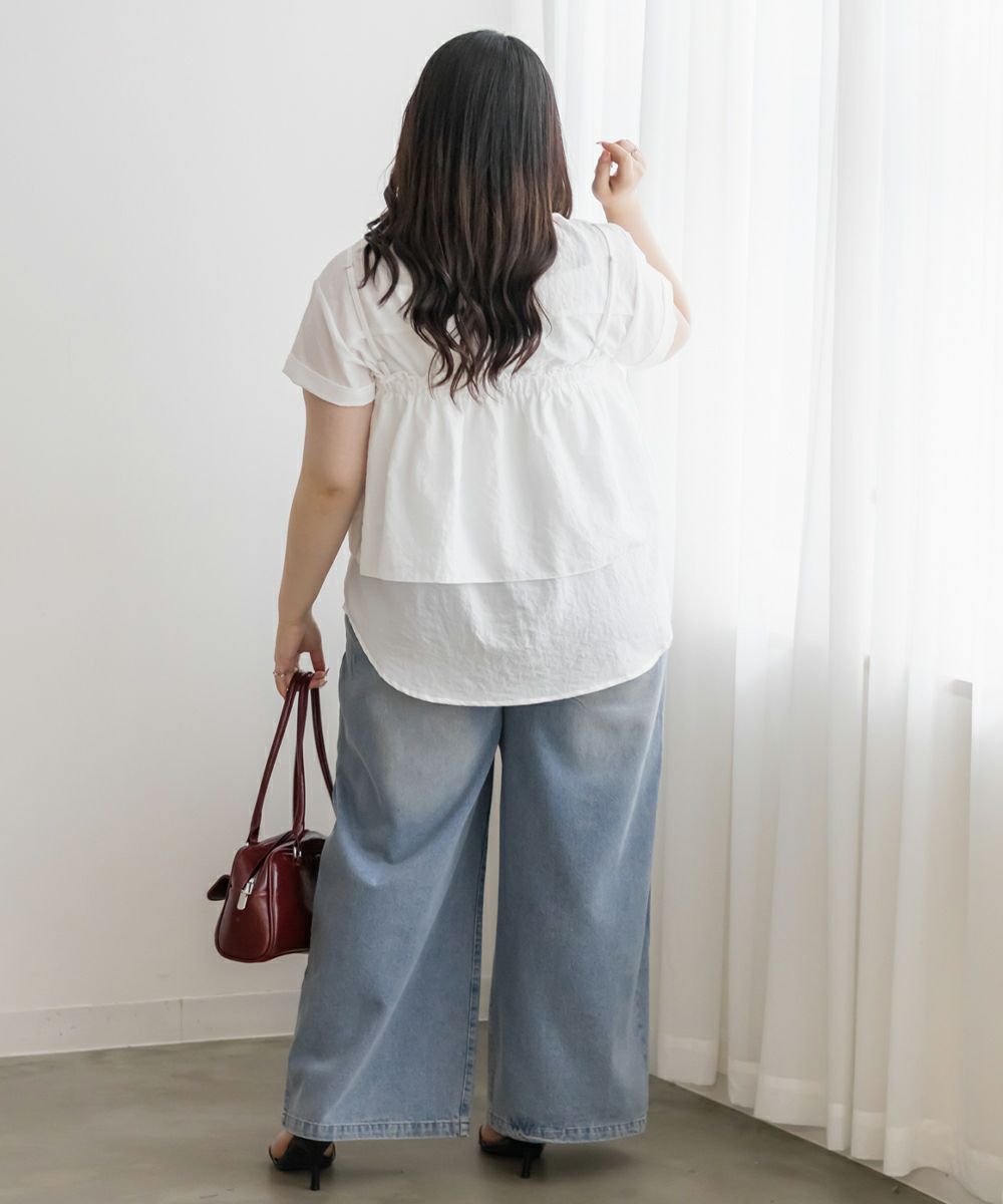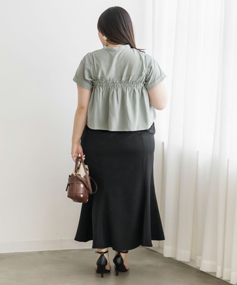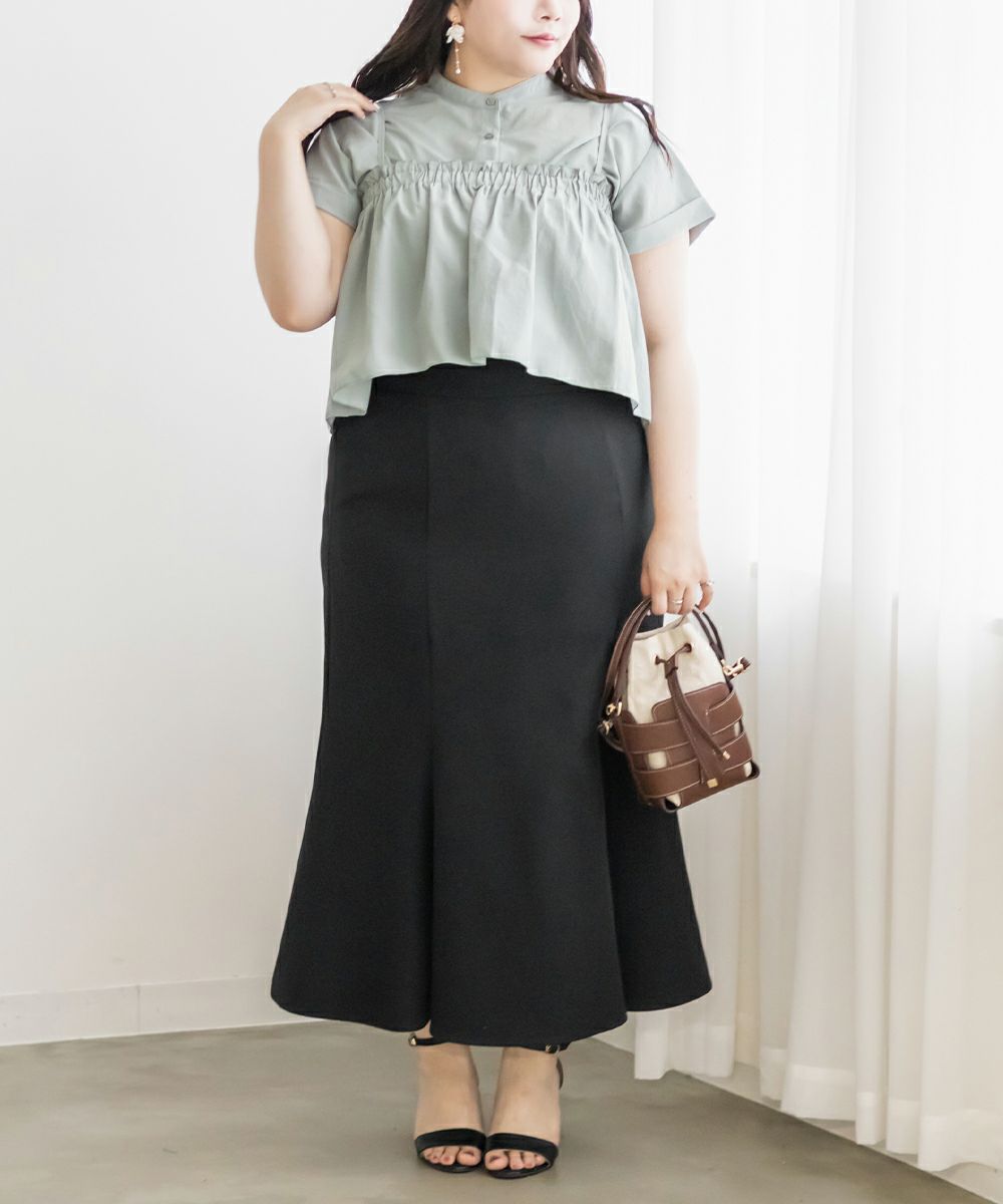 3Lサイズを着用しました。ブラウス・ビスチェともにちょうどいいサイズ感で、腕まわりや身頃にも窮屈感はありませんでした◎ 夏にピッタリなさらっとした軽い生地感です!セットで着るとメリハリのあるレイヤードスタイルが完成して、一気におしゃれ感がアップします♪ビスチェがふんわりお腹周りもカバーしてくれて、すっきり着やせして見えます!ブラウス単体でも使えるので、着回し力も抜群です。