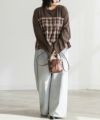 チェック柄ドッキングシャーリングブラウス チェック柄ドッキングシャーリングブラウス