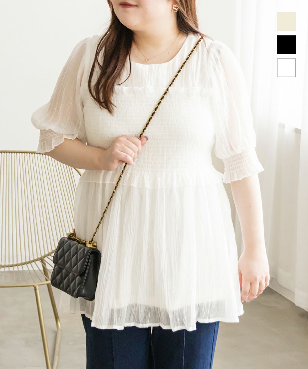 CLETTE オリジナル レイヤード風 半袖 シャーリング ブラウス LL 3L 4L クレット フェミニン ガーリー CLETTEオリジナル★レイヤード風半袖シャーリングブラウス