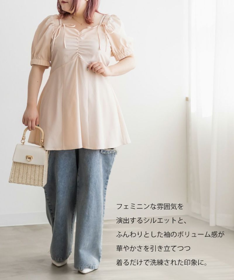 LLサイズを着用しました。袖まわりに程よくゆとりがあり、後ろはゴム入りなので窮屈感なく着られてちょうどよかったです◎シルエットがとにかく華奢に見えて、着たときにバランスがとりやすいのがうれしいポイント♪ネックラインはオフショルにもスクエアにもできるマルチWAY仕様で、気分や合わせるアイテムによって雰囲気を変えて楽しめます。袖口のボリューム感が可愛くて、シンプルなボトムに合わせるだけでコーデが華やかに決まります!さらっと軽い生地感で、夏でも涼しく着られるのも魅力です。