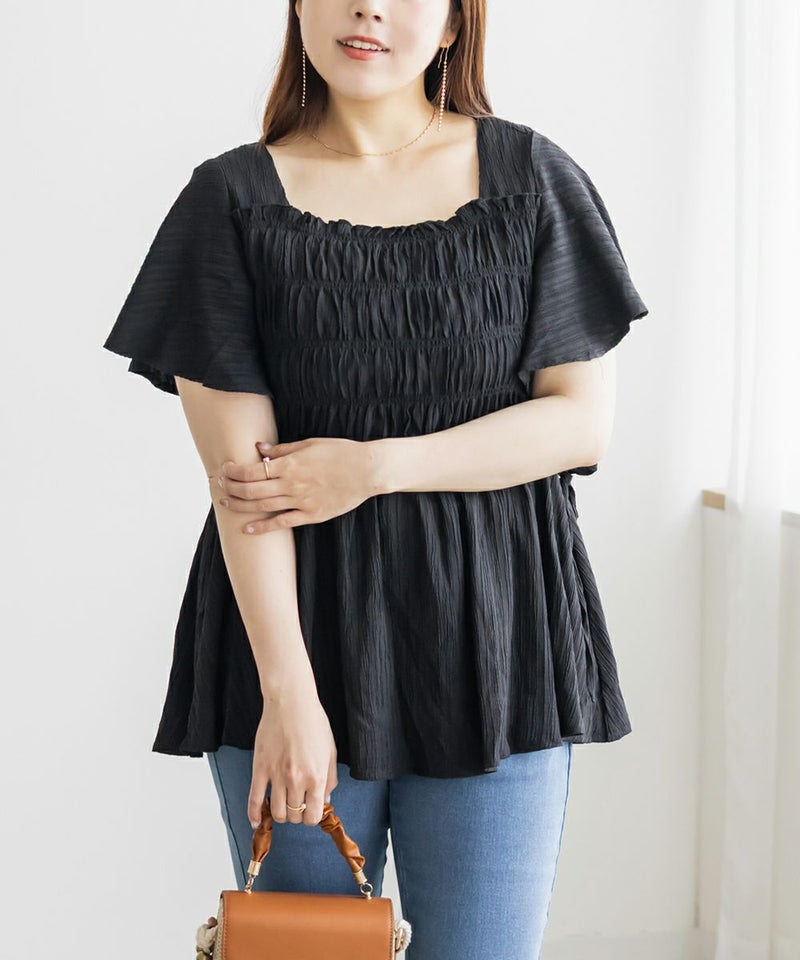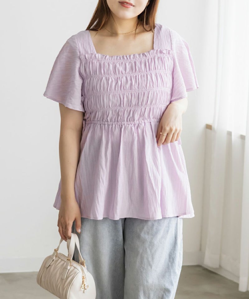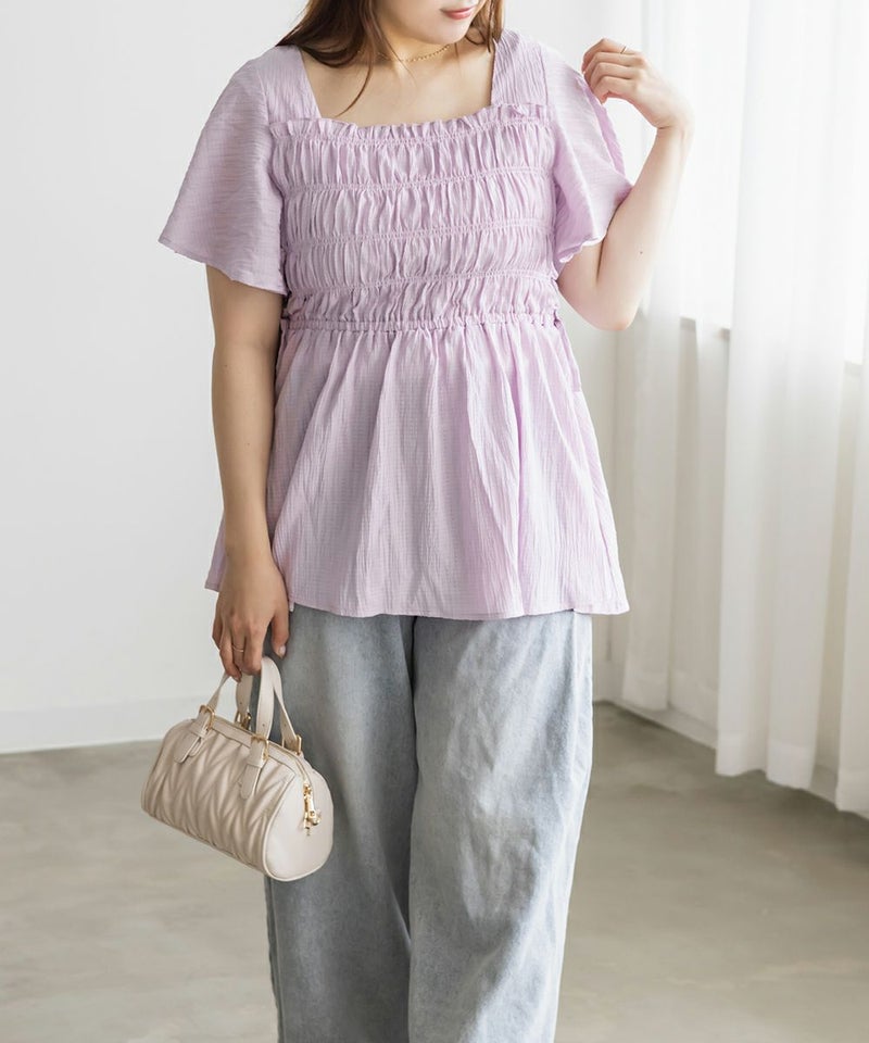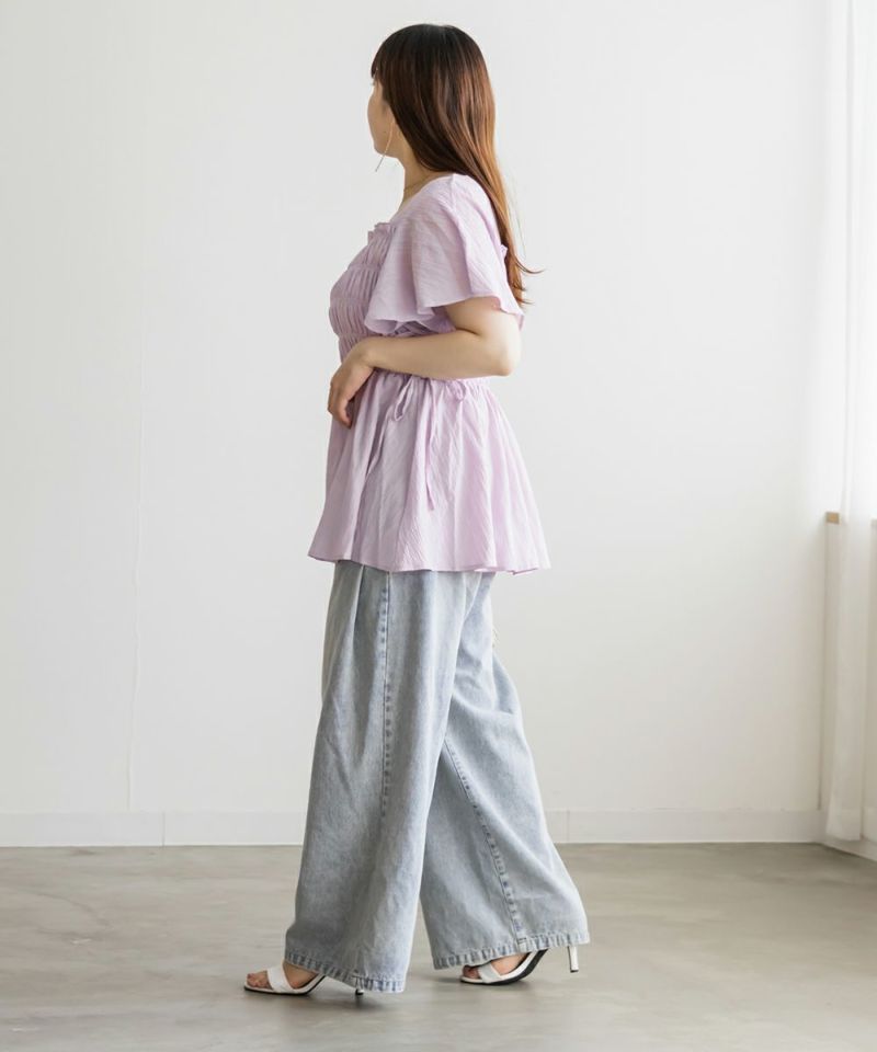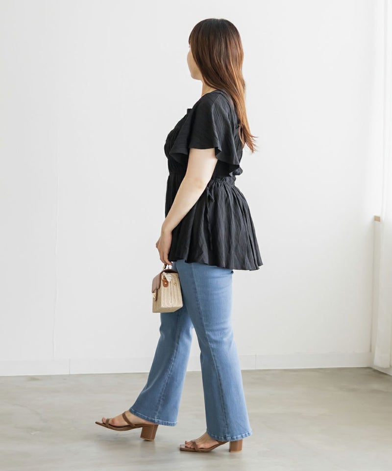 3Lサイズで全体的にちょうどよく、ウエストのシャーリングが自然にフィットして、メリハリのあるシルエットに見せてくれます◎サイドのレースアップデザインがアクセントになって、サッと着るだけでおしゃれ上級者な雰囲気に♪お腹まわりはシャーリングで程よくカバーしつつ、締めつけ感はないので、着心地もとっても楽でした。袖は二の腕をふんわり隠してくれる長さとボリューム感があり、体型カバーもバッチリ!デニムでカジュアルに、スカート合わせで甘めにも着られる、着回し力の高いアイテムです。