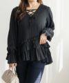 CLETTEオリジナルななめフリルレースアップブラウス CLETTEオリジナルななめフリルレースアップブラウス