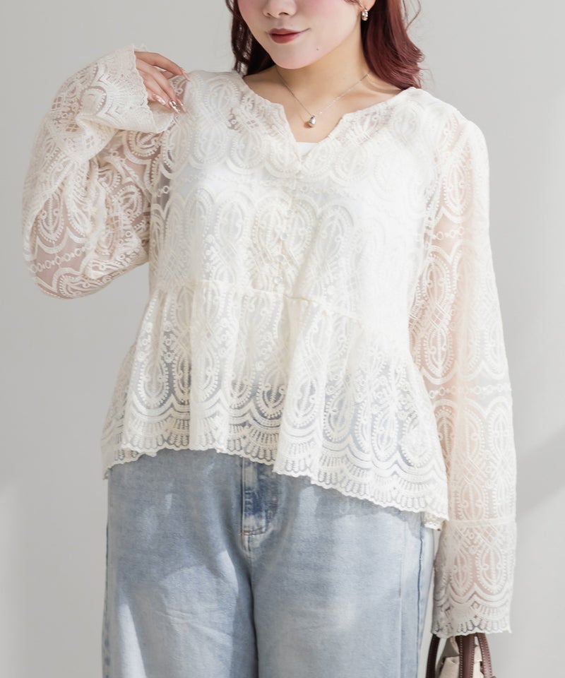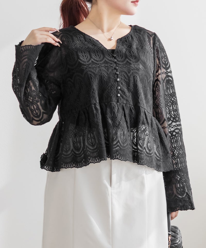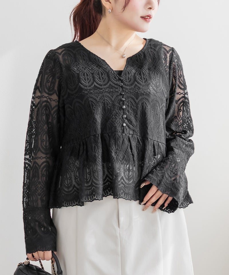 CLETTEオリジナル総レースペプラムブラウス CLETTEオリジナル総レースペプラムブラウス