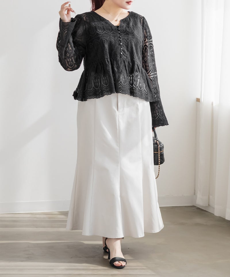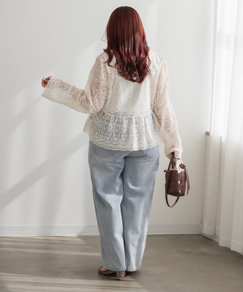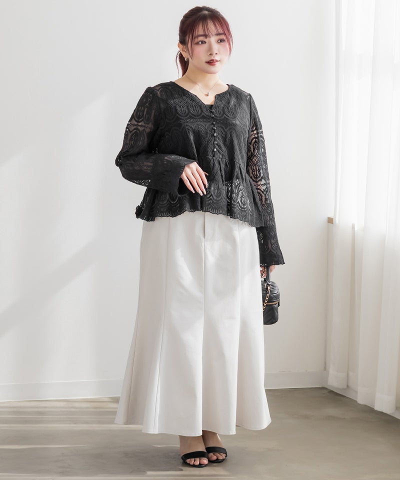 総レースが着るだけで女性らしさが引き立つ、華やかで着映えする1枚。ペプラムシルエットが自然とスタイルアップを叶える。
