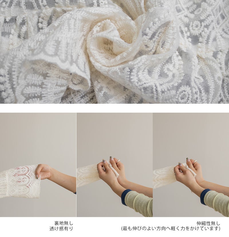 生地感 ややハリ感があるレース素材。