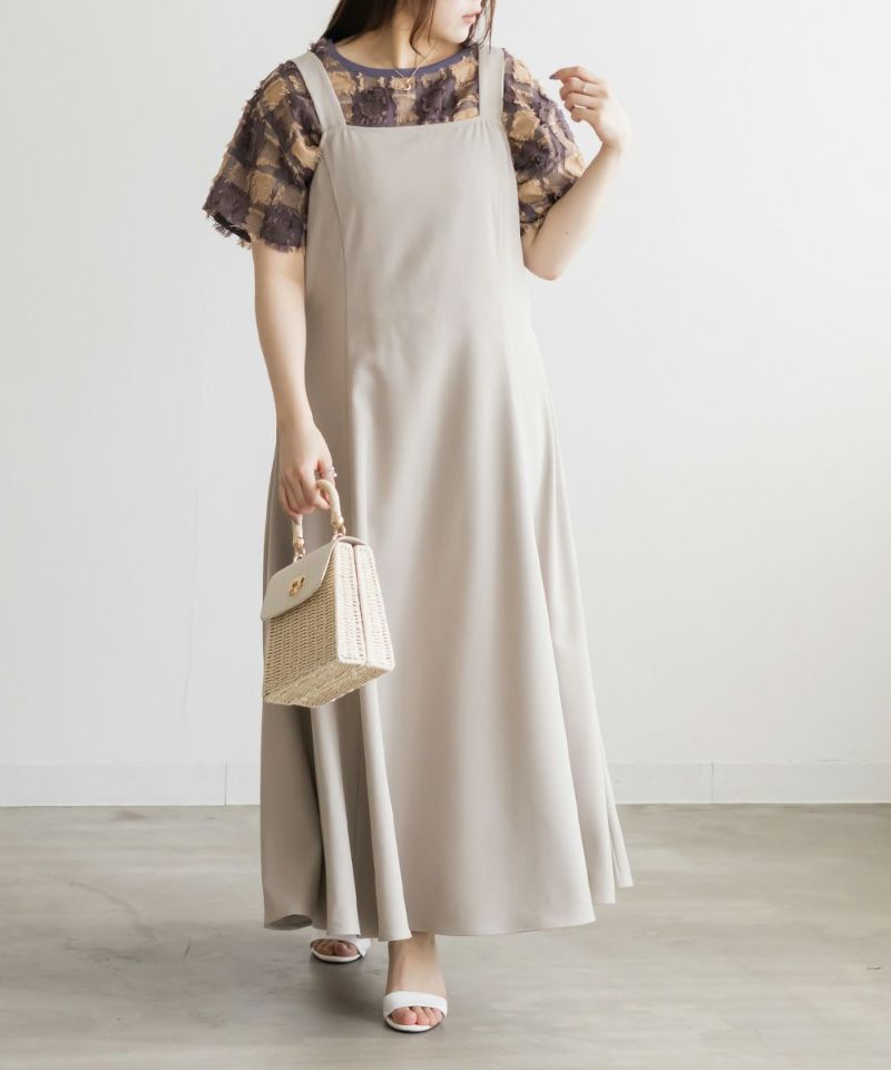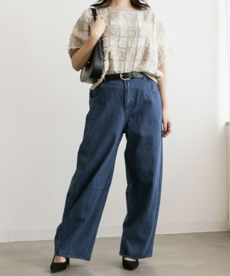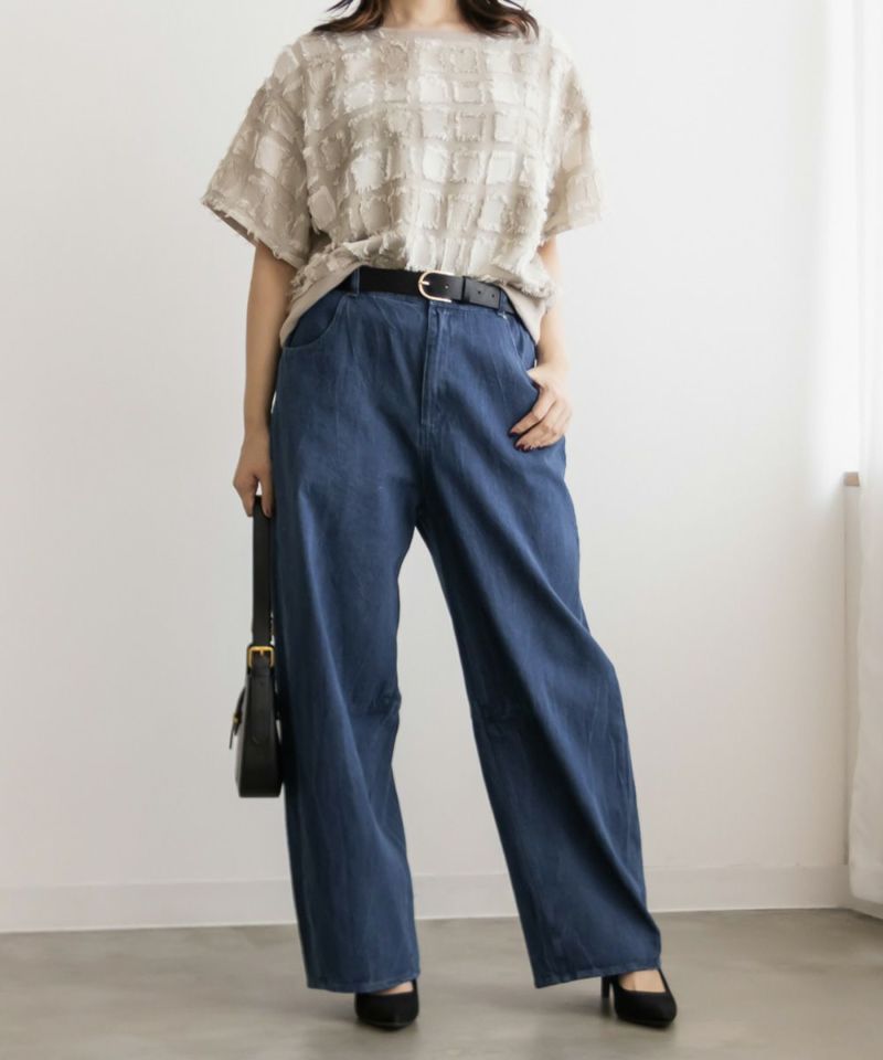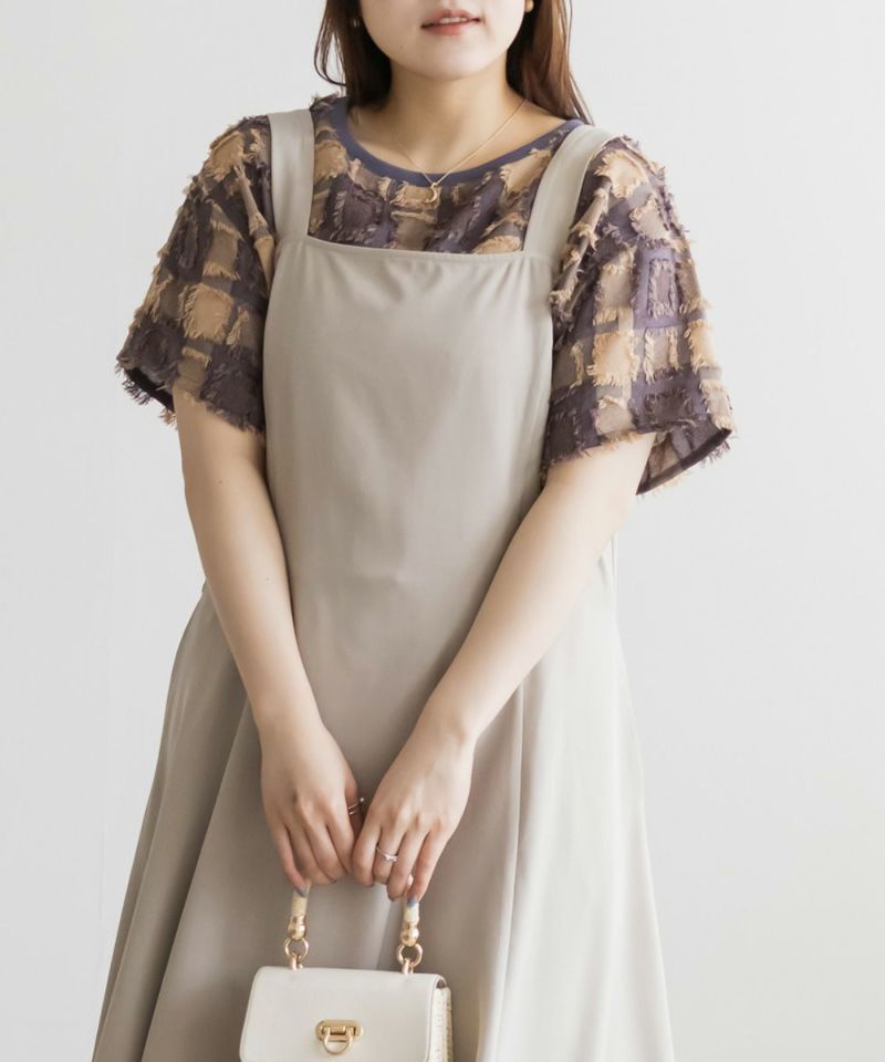 3Lを着用して丁度良いサイズ感でした!程よいゆとりがあって窮屈感も無く着用出来ました◎大人かわいいフリンジ生地が肉感を拾いにくくタックインしなくても着れる着丈なのが嬉しいです◎さらっとした清涼感のある生地なので真夏も涼しく着用できそうです!スカートのセットできると大人っぽくこなれ感がでてとってもかわいいです♪