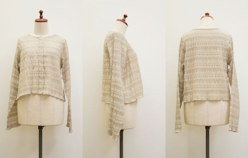 3Lサイズを着用してちょうどいいサイズ感でした。トップスですがピタッとしすぎず程よくゆとりを持って着られました。軽ろやかな生地でストレスフリーに着られました!フロントのホックが今っぽいデザインで、縦のラインが強調出来て着やせして見えます!ネックラインも綺麗に開いていて、詰まった印象が無くすっきり見えするのが嬉しいです!生地がポコポコしていて、大人カジュアルにスタイリングできるデザインになっています◎丈感も絶妙でインしなくてもコーデしやすいのもポイントです!冬はインナーを着て重ね着したり、夏は冷房対策のカーデにも使えて、オールシーズン使えるトップスなのであると便利な1枚です!