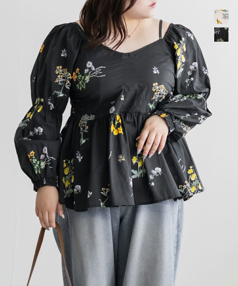 3Lを着てピッタリのサイズ感でした。後ろはシャーリングゴムになっていて、程よくフィット感もありつつ楽な着心地です◎大きい花柄が女性らしくパッと目を惹く生地が可愛いです!3WAY仕様のスリーブで気分に合わせた着こなしが楽しめます。袖ありで長袖ブラウスとしてオフショル・オンショルにしたり、袖を外してビスチェとしてと、雰囲気を自在に変えられるのが魅力◎ 薄手で軽やかな生地感なので着方を変えてオールシーズン、デイリーからお出かけまで幅広く活躍します♪