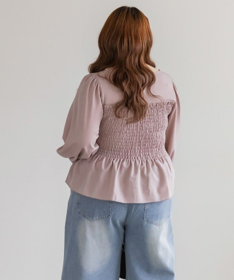 3Lを着て着用感はちょうどよく、シャーリング部分も締め付け感なく楽に着られました。バストまわりからウエストにかけてほどよくフィットしてくれるので、自然にメリハリが出て着やせして見えるのが嬉しいポイントです。