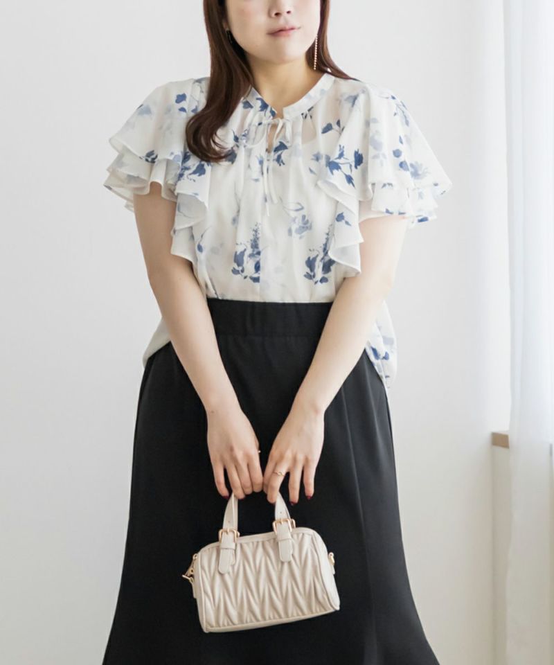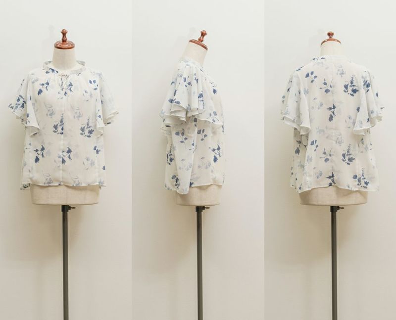 3Lサイズを着用してぴったりのサイズ感でした。伸びの無い素材なのでサイズ確認をお勧めします!透け感のある生地と大きめの花柄がどんなコーデにも合わせやすいです◎フリル袖のフェミニンなデザインも可愛い1枚で、シンプルなスカートや、デニム合わせしても相性良く着られます!キャミワンピやジャンスカなどのインナー使いも出来ちゃうので色々なコーディネートに活躍するブラウスです!