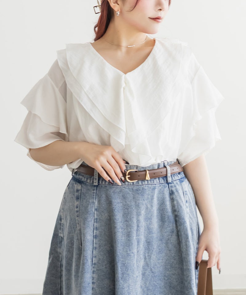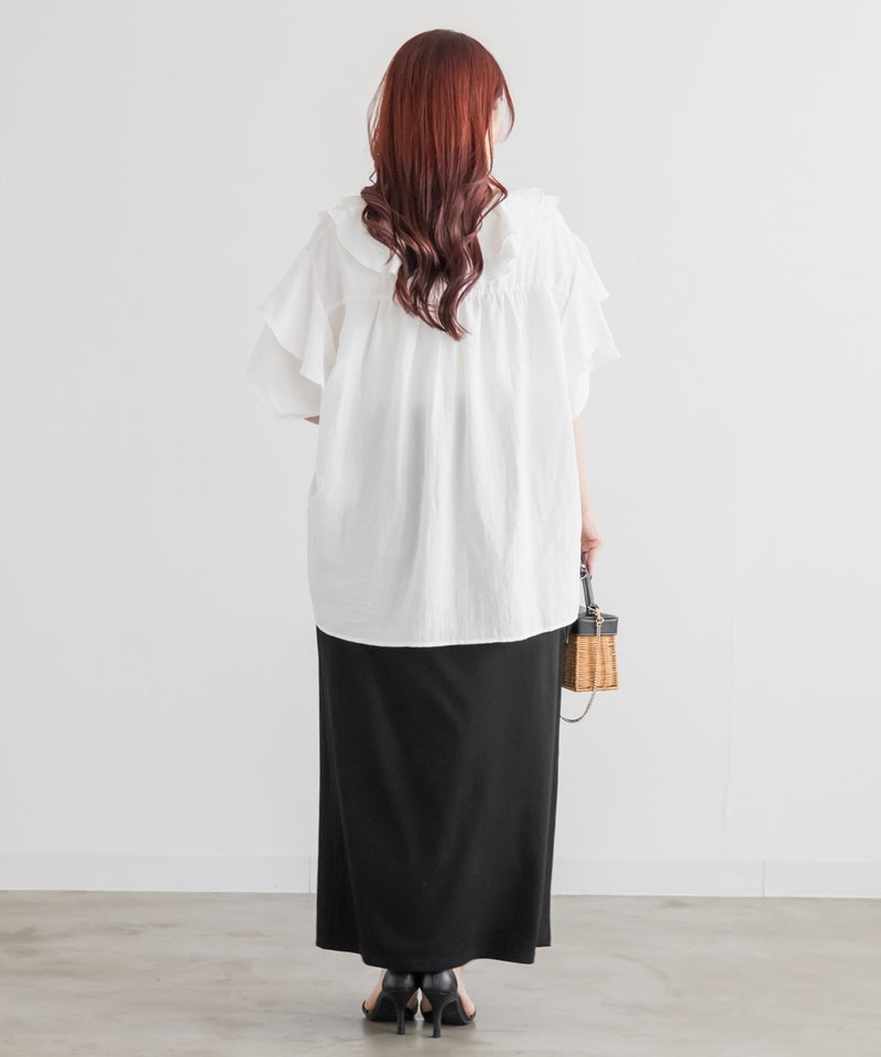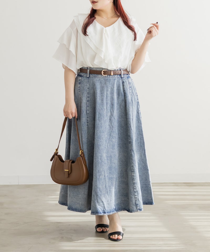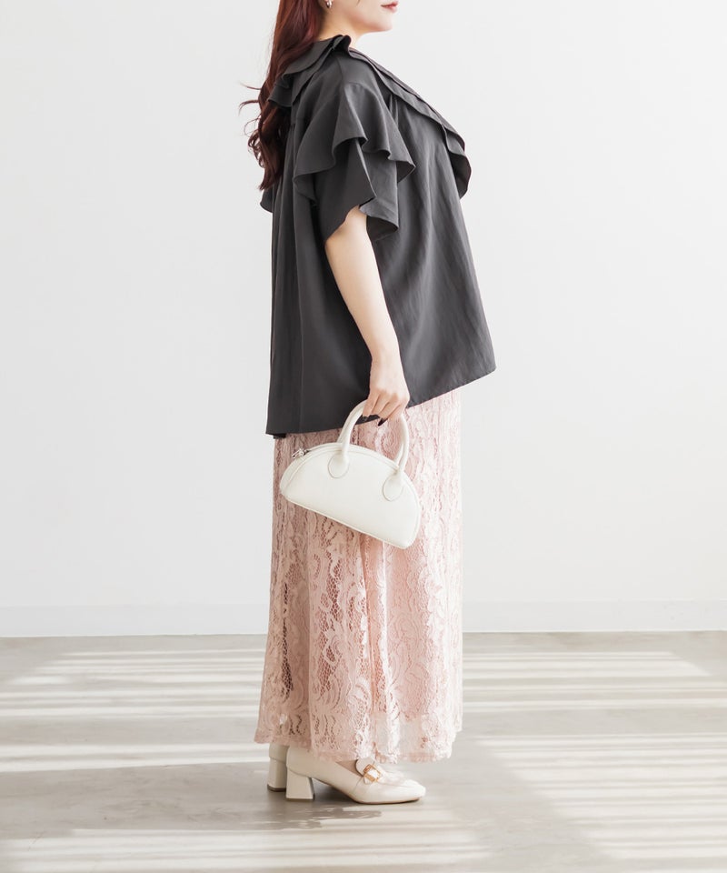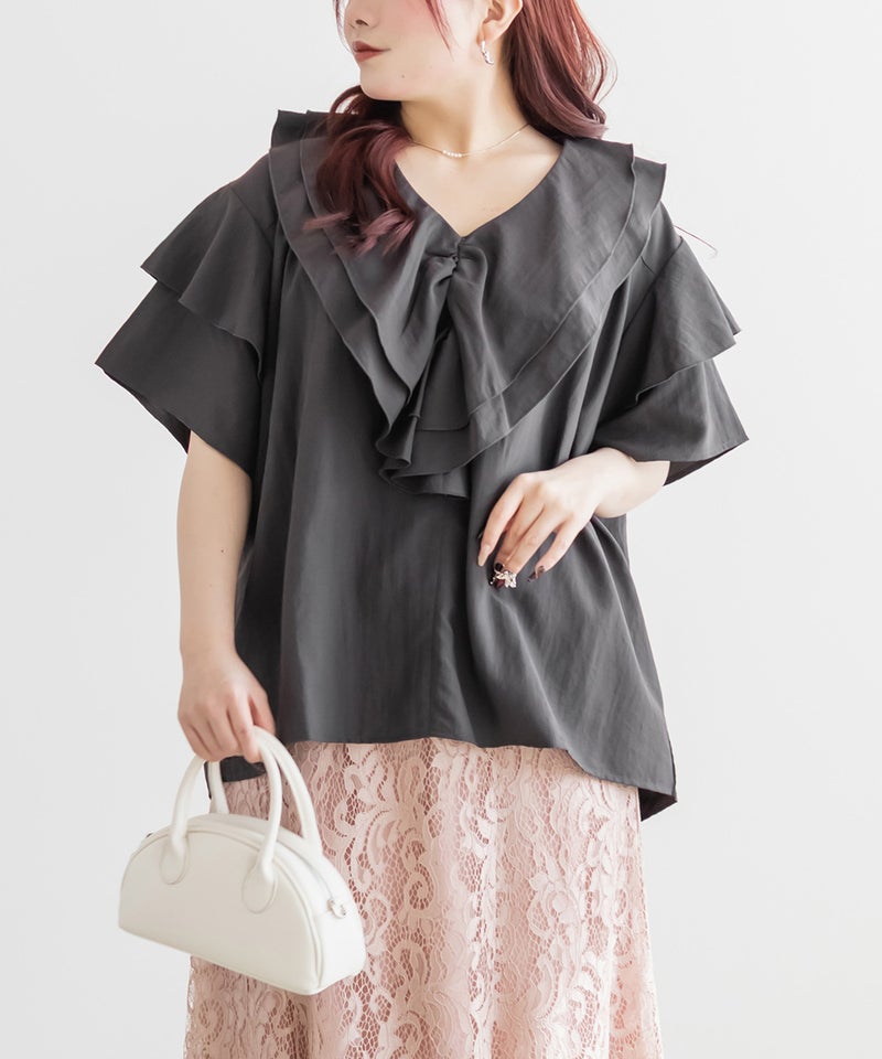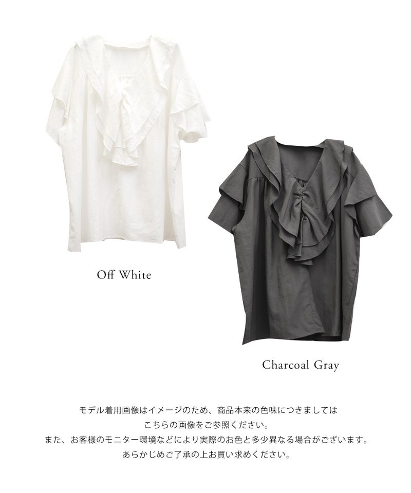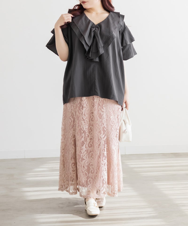 3Lサイズを着用しました。身頃や腕まわりに程よくゆとりがあり、全体的にちょうどいい着心地でした。ラッフルデザインが華やかで、1枚で着映えするチュニックブラウスです♪ふんわりと広がるシルエットで気になる体型も自然にカバーしてくれました。