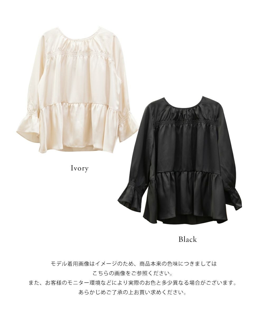 他の画像を見る クレット 大きいサイズ プラスサイズ シャーリング ビジュー ペプラム フリル スクエア フレア袖 CLETTEオリジナル★ギャザーリボンデザインブラウス 2025年5月上旬販売価格 ¥ 5,940 ↓ ¥ 5,500 税込 詳細を見る お気に入りに登録する