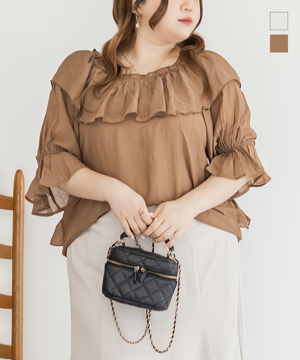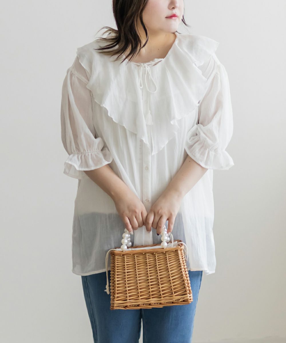 他の画像を見る プラスサイズ 大きいサイズ クレット リボン ドロスト 袖コンシャス 5分袖 6分袖 半袖 フリル衿オフショルブラウス 2025年6月上旬販売価格 ¥ 4,290 ↓ ¥ 1,980 税込 詳細を見る お気に入りに登録する